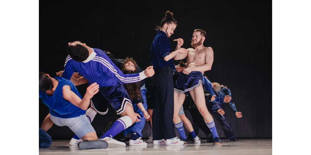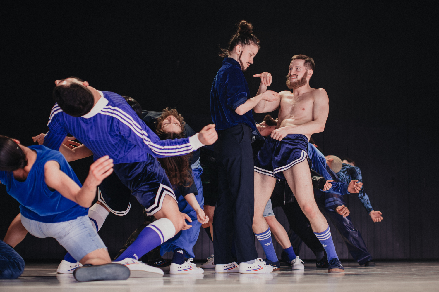 Nur stimmt das alles so gar nicht. Alle tragen hier einen Bart, auch die Tänzerinnen. Blaubart ist jede und keiner. So, wie in dieser „Rolle“ die Tänzerinnen blenden, tun es auch die Tänzer selbst. Ironische Brechungen zeigen, wie unernst diese Männlichkeit gemeint ist. Heteronormativität, sie wird hier mit Freude zu Grabe getragen. Das ist camp. Das ist unbekümmert. Und das ist selbstbewusst. Vom ersten Moment an ist klar, wie viel Spaß es dem Ensemble macht, diesen Diskurs um toxisches Miteinander und Kontrollzwang zu dekonstruieren. Kein Bock auf dröge Geschichten. So what?