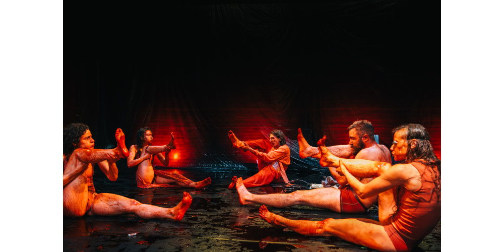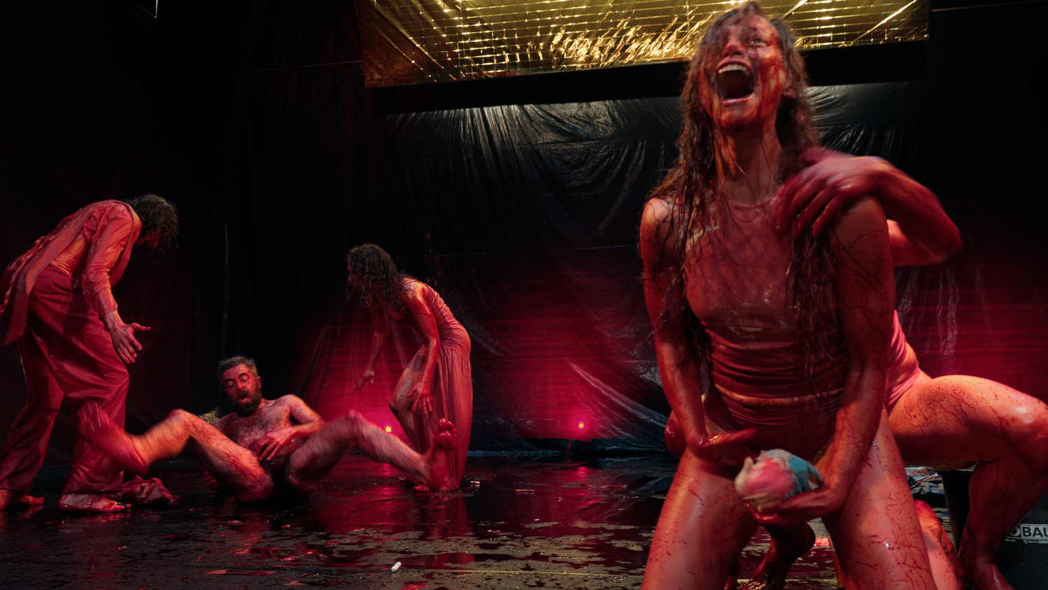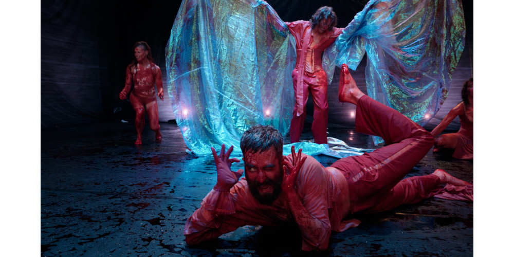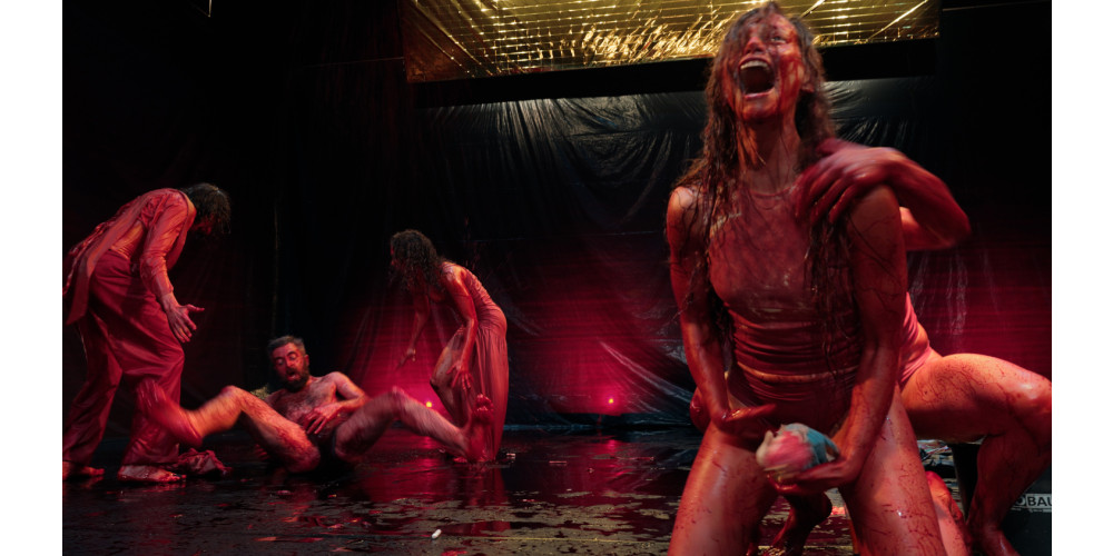 Welch ein Glück, dass das Pumpenhaus in Münster einen roten Vorhang sein Eigen nennt. Plakativer kann man sich einen Bühnenraum schließlich kaum wünschen, wenn sich alles um den roten Saft des Lebens dreht. Für den in Bottrop ansässigen Performance-Künstler René Haustein ist Blut nur Vehikel für seine Botschaft. In der Koproduktion mit bodytalk peitscht er sich selbst, vier Tänzerinnen und Tänzer und, selbstredend, das Publikum durch die aufwühlenden Tiefen eines inneren Drangs, der den unbedingten Ausdruck will. Da wird niemand geschont. Und ja, die roten Flüssigkeiten auf der Bühne sind nicht nur Theaterblut.