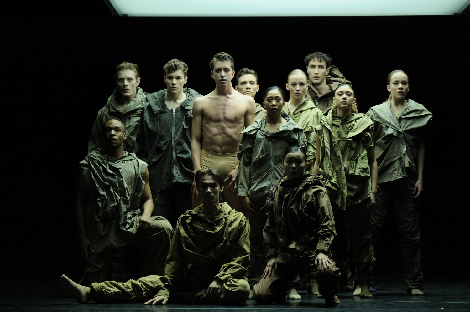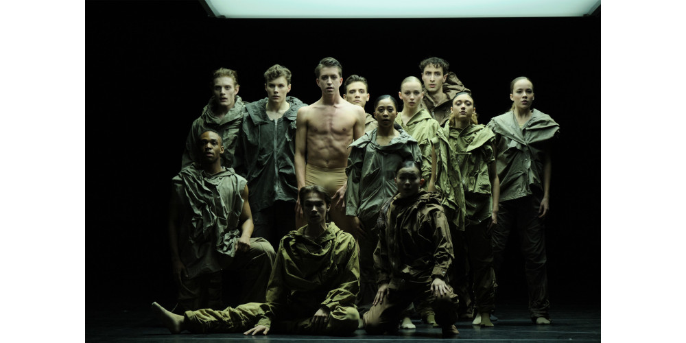 Lucas Valente, erfahrener Tänzer im Ballett Zürich, nennt sein Stück „Point of no Return“ und deutet damit auf eine unumkehrbare Klimakatastrophe hin. Die 14 Tänzer*innen interpretieren seinen sportlichen, etwas eckigen, die Arme betonenden Stil mit großem Einsatz. Auffallend, wie erfolgreich die Gesamtgruppe jene Szenen bewältigt, die alle gemeinsam parallel zu tanzen haben. Inhalt und Aufbau des Stücks kann das Publikum allerdings nur vollständig erfassen, wenn es zuvor Valentes Einführung im Programmheft gelesen hat. Es geht nämlich um die vier Jahreszeiten, die unter dem Klimawandel leiden: der Sommer mit Hitzewellen und Waldbränden, der Herbst mit Stürmen und Regenfällen. Hoffnung bringt dagegen immer noch der Frühling.