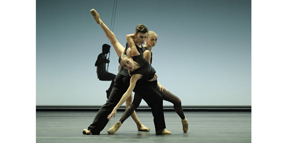 Derweil pendelt im Hintergrund ein weiß gekleideter Mann auf einer Schaukel hin und her. Gegen Ende des Balletts richtet er sich auf, steigt auf die Bühne herab, hilft den Tänzerinnen, die bereits aus dem klassischen Kanon gefallen und von den Spitzenschuhen gekippt sind, zurück ins Gleichgewicht. Doch er sucht vergeblich, Ruhe ins Chaos zu bringen. Atemnot breitet sich aus. Am Schluss liegen alle tot am Boden. Ende einer Zeitepoche. Ein neuer Mann, diesmal in Schwarz, löst den Mann in Weiß ab.