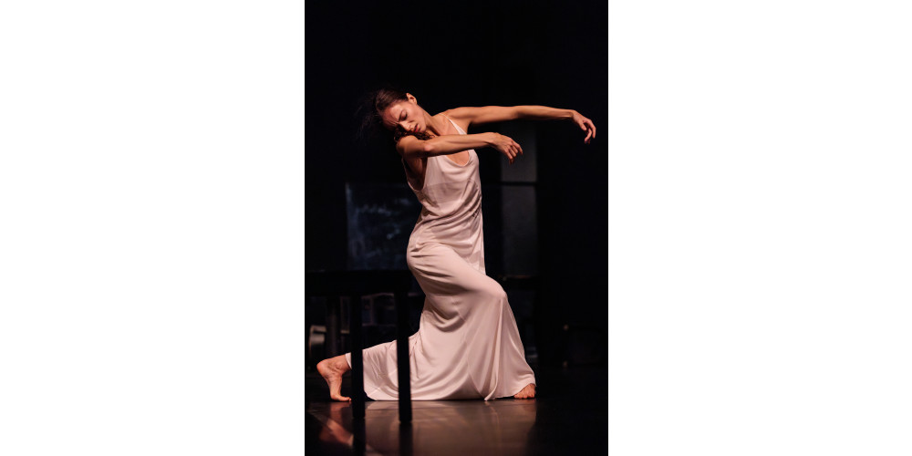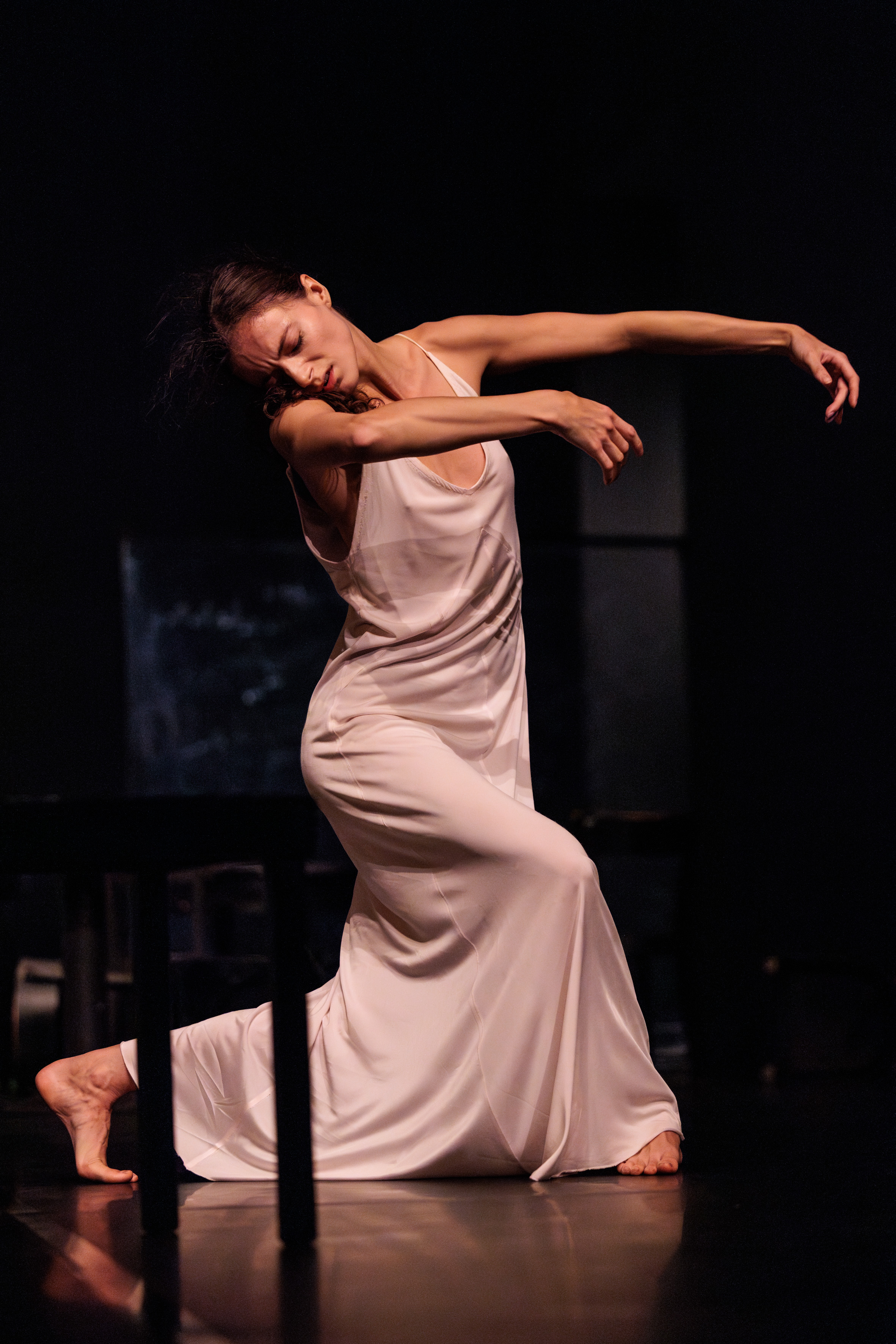 Man sieht ja bekanntlich erst mal so gut wie nichts. Das Licht lässt sich sehr lange Zeit, und es dauert, bis mehr als die Drehtür im Hintergrund und die berühmten braunen Holzstühle mit der halbrunden Lehne auszumachen sind. Und in diesem Zwielicht wird es mit dem Auftritt der ersten Tänzerin eben schlagartig unwirklich in Pina Bauschs seelendunklem Klassiker „Café Müller“.