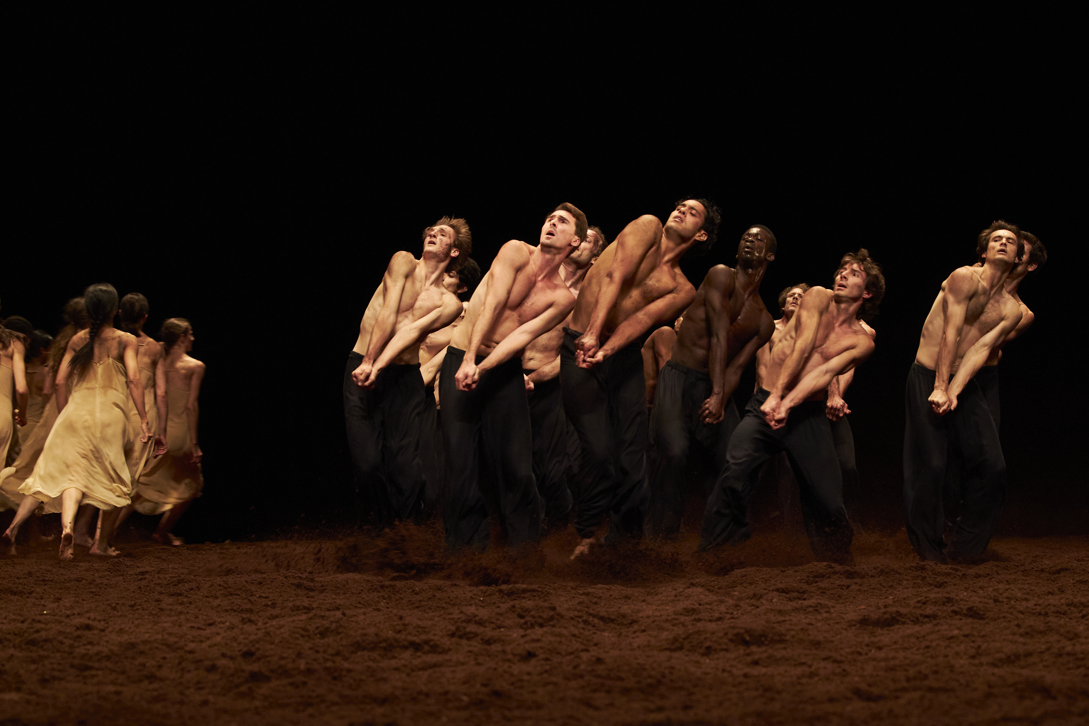 Das Premierenpublikum brauchte offenbar eine Weile, um aus diesem Traum zurückzukehren. Es schien, als würde der Applaus erst nach einer gewissen Verzögerung so richtig loslegen. Wörtlich von den Stühlen gerissen hat es die Zuschauer*innen aber erst ganz am Schluss, nachdem die 30 Tänzer*innen sich im „Frühlingsopfer“ die dunkle Erde auf der Bühne und Strawinsky dem Publikum die Klänge um die Ohren gehauen hat.