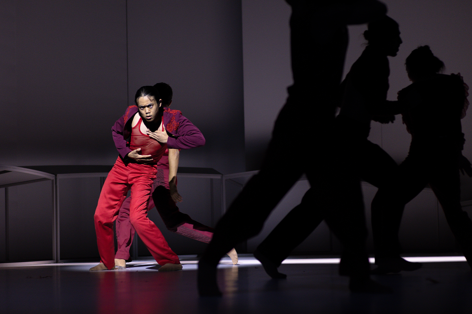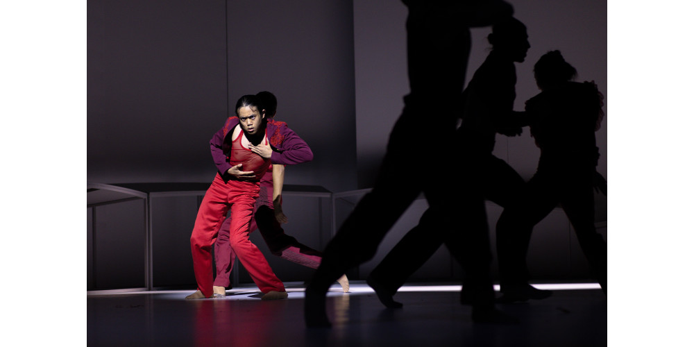 Katharina Andes hat dazu blutrote Kostüme geschaffen, die mit eben jenen Rüschen und Anleihen an Bolerojäckchen fröhlich Herkömmliches zitieren, aber ausgelassen jeder Tänzerin und jedem Tänzer individuelle Entwürfe auf den Leib geschneidert. Ihr Bühnenbild ist ebenso clever. Ein Kreiselement, das an eine (Stier-)Arena erinnern mag, als schräge Ebene, flexibel aus einzelnen Modulen zusammengefügt, die im Verlauf des Abends so zerlegt werden, wie die Emotionen aus dem Ruder laufen.