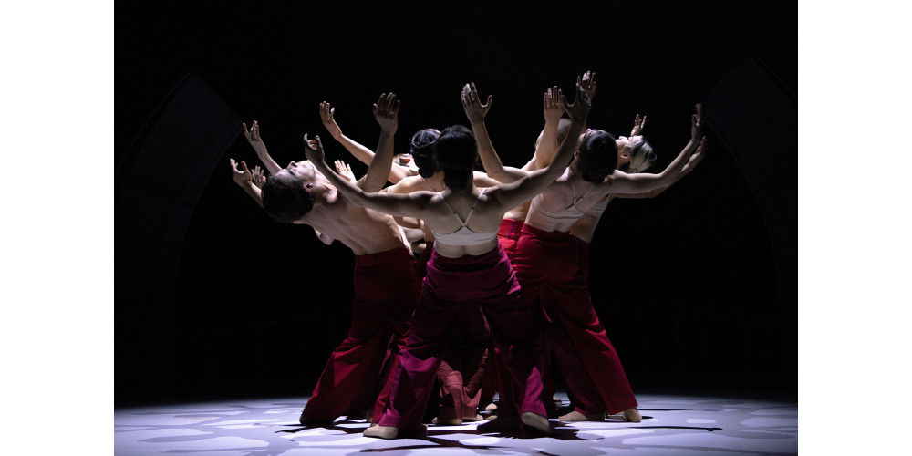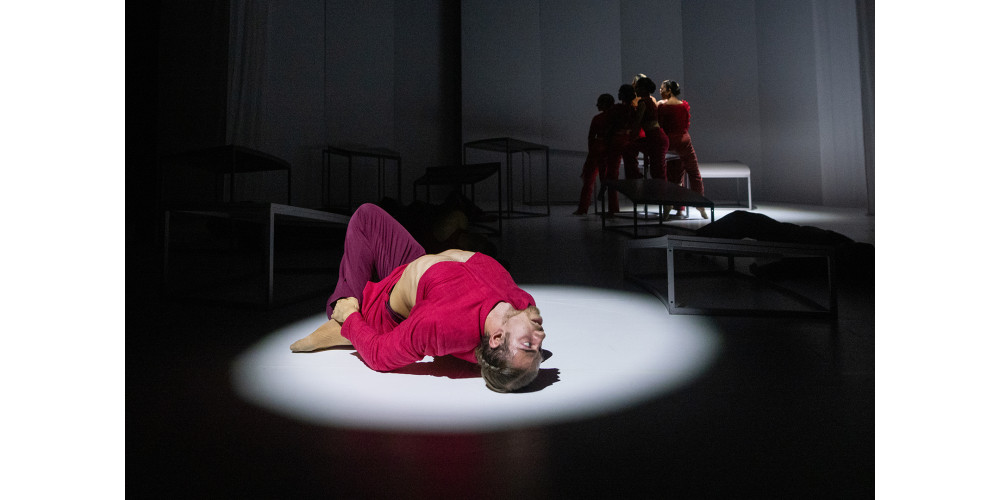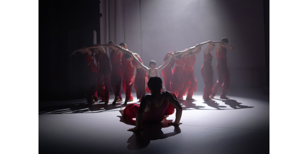 Auf beeindruckend clevere Weise fügt Natalie Wagner mit ihrem Ensemble als zweiten Teil Ravels unwiderstehliche musikalische Eskalation nicht einfach nur hinzu. Auf geradezu verblüffend simple Weise knüpft sie an den ersten Teil an und macht den „Bolero“ zu einer Art Meta-Diskussion und Fortführung ihrer „Carmen“. Deutlich stärker ins Abstrakte gedreht sind die Individuen des ersten Teils verschwunden. Übrig geblieben ist eine organische Masse, deren Einzelteile miteinander verwoben sind. Als würde sich langsam eine riesige Blüte öffnen, biegen sich die Tänzerinnen und Tänzer. Es ist nicht mehr das Hier und Jetzt von vorhin. Es ist ein „Woanders“. Die Bewegungen kommen jetzt nur noch aus dem Oberkörper heraus. Rot sind nur noch die Hosen. Die Oberkörper sind frei. Ein tiefes Atmen ist zu hören, dann ein einsetzender Herzschlag, der, schneller werdend, schließlich in den Rhythmus des „Bolero“ übergeht.