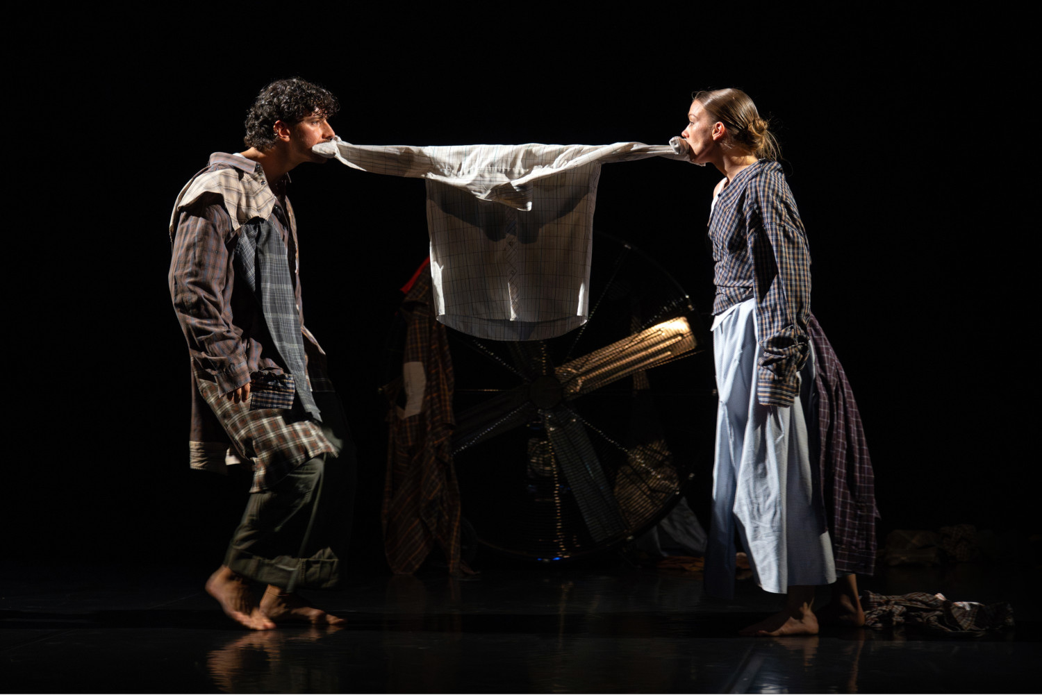 Wie unterschiedlich sich die Erinnerung an ein- und dasselbe Ereignis ins Gedächtnis einschreiben kann, spielten Natsuho Matsumoto und Nicola Prato im gemeinsam choreografierten und getanzten Stück „Memory of a Fall“ durch. Mehr zum Tanzthema Nummer Eins – Boy meets Girl oder umgekehrt – trugen Paloma Galiana Moscardó und Leonardo Cheng in ihrer gemeinsamen Choreografie „The Hollow Space“ bei. Ein Sessel mit überproportionaler Rückwand bot die Gelegenheit für raffinierte, artistisch umgesetzte Bilder. Als kleiner Glücksfall erwies sich das gemeinsam choreografierte und getanzte Stück „A Fan of Yours“ von Dora Stepušin und Joseph Caldo. Kleidung als Metapher für sozialen Kontext und zugleich als Ausdruck für Emotionen, Witz und eine mutige, kontrastreiche Bewegungssprache eröffneten den ganzen großen Assoziationsraum für Paar-Geschichten.