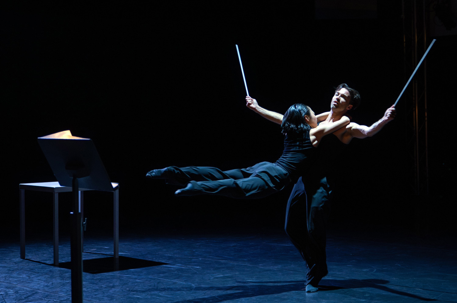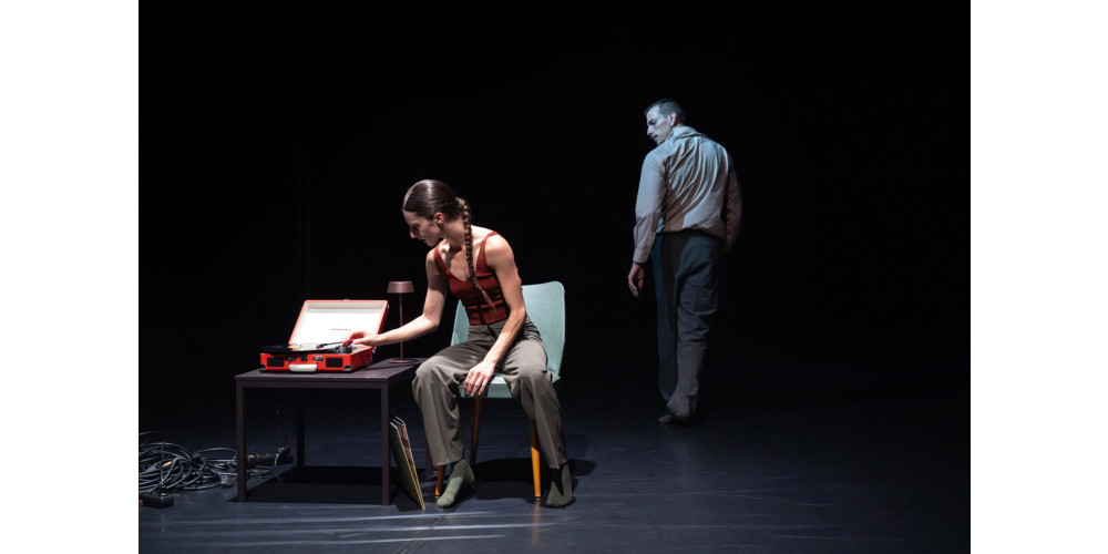 Ebenfalls aus dem üblichen Rahmen fällt die Arbeit von Ballettmeisterin Zoulfia Choniiazova „Walk the Line“. Sie ließ Tanzdramaturgin Susanne Wiedmann – im 50er-Jahre-Tupfenkleid mit schwingendem Rock – in Sprech-Rolle(n) für die Frauen im Leben von Johnny Cash schlüpfen. Shaun Patrick Ferren setzte derweilen die innere Zerrissenheit des legendären Country-Sängers wirkungsvoll in Szene.
