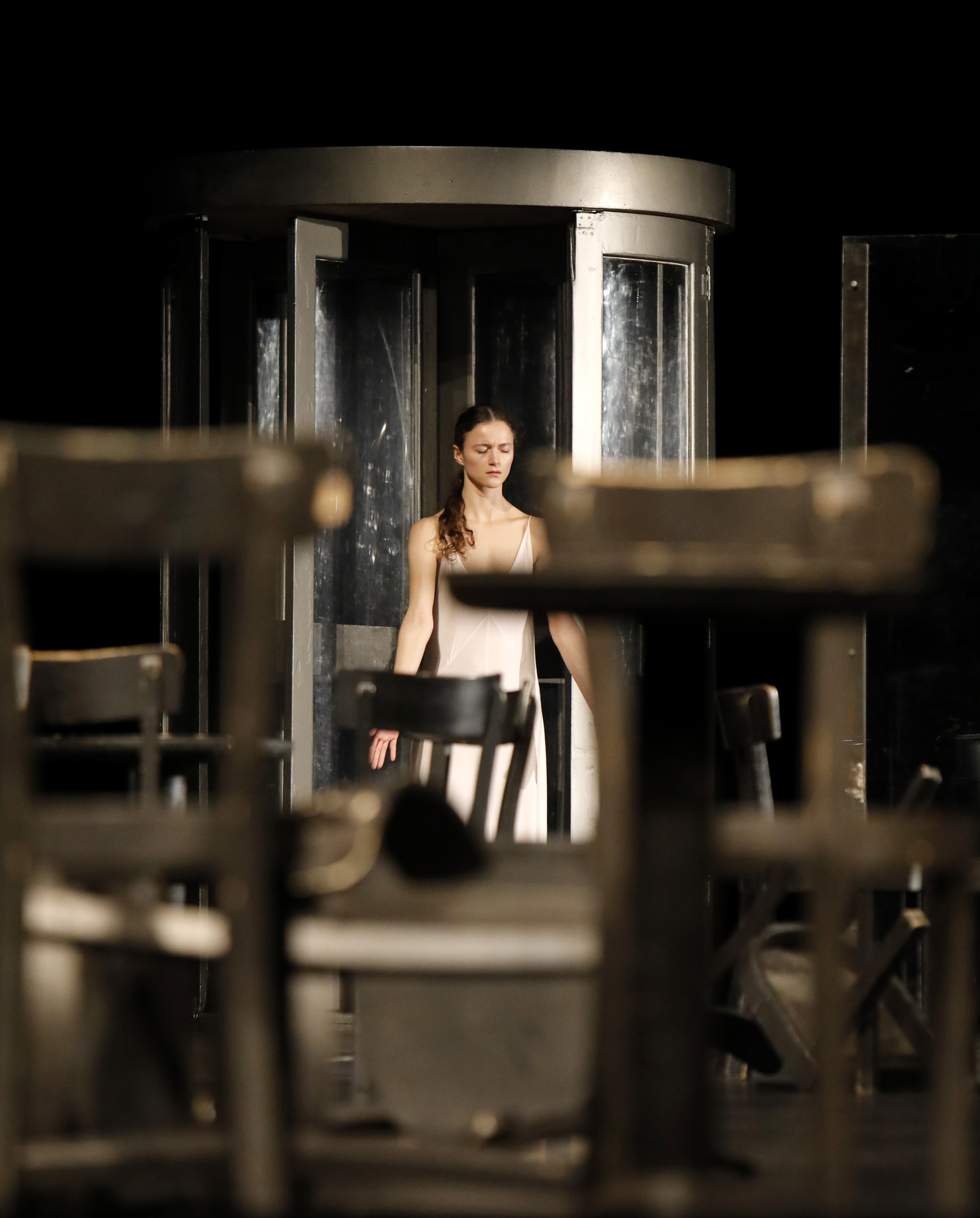 Wer kennt das Bild nicht: unzählige Kaffeehausstühle und Tische auf der Bühne verteilt. Ein in sich abgeschlossener Raum mit einer Drehtüre im Hintergrund. Rolf Borzik hat einen Raum geschaffen, der sich für Tanz eigentlich nur bedingt eignet. So stoßen die Tänzer*innen immer wieder gegen Stühle und Tische. Ein Tänzer ist daher immer wieder mit dem Weg- und Aufräumen beschäftigt. Eine Tänzerin mit roten Haaren, die leicht verwirrt wirkend durch diesen Raum läuft. Sie sucht Anschluss, aber findet diesen nicht. „Café Müller“ kann man durchaus als wichtigen Meilenstein in der Entwicklung des Tanztheaters und als eines der wichtigsten Stücke von Pina Bausch bezeichnen. Sie selbst hat die Rolle der schlafwandelnden Tänzerin, die sich mit ausgestreckten Armen über die Bühne bewegt, immer wieder wo anstößt und nirgends ankommt, lange verkörpert. Nun ist die Rolle mit der Transgender-Tänzerin Naomi Brito besetzt.