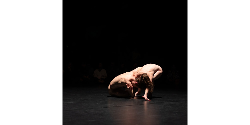 „herses, duo“ aus dem Jahr 1997 ist eine sehr intime Choreografie für eine Tänzerin und einen Tänzer. Die beiden wirken entrückt, tanzen nur für sich. Es geht ihnen nicht um die Unterhaltung des Publikums, das in einem sehr engen Kreis das Paar umschließt und somit stark in eine voyeuristische Rolle gedrängt wird.