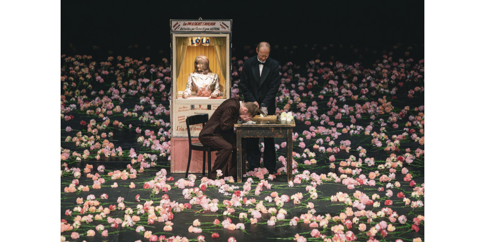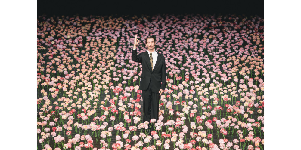 Auf der Bühne ein riesiges Feld aus 8.000 künstlichen Nelken. Peter Pabst hat ein ikonisches Bühnenbild geschaffen, das sich auf den ersten Blick für Tanz genauso wenig eignet wie das für „Café Müller“. Die Frauen wie so oft in edlen Abendkleidern, die Männer in Anzügen (Kostüm: Marion Cito). „Nelken“ ist 1982 zur Uraufführung gekommen, heute wird es mit dem Zusatz „Ein Stück von Pina Bausch“ gezeigt. Auch wenn es nicht ganz so zeitlos wirkt wie „Café Müller“, so verhandelt es Themen, die heute noch immer oder wieder aktuell sind. Zu sehen sind viele kleine Szenen, die aber ein großes Ganzes ergeben. Wieder geht es um zwischenmenschliche Beziehungen, die teilweise sehr gewalttätig wirken. Vier Stuntmen kämpfen auch immer wieder miteinander. Das Geschehen im Nelkenfeld wird von zwei deutschen Schäferhunden beobachtet. Immer wieder fordert ein Tänzer die Darsteller*innen auf, ihren Pass vorzuweisen. Die Tänzer*innen sind auf der Bühne Menschen: Sie lachen, weinen, schreien ... und können sich mit den dargestellten Figuren identifizieren.