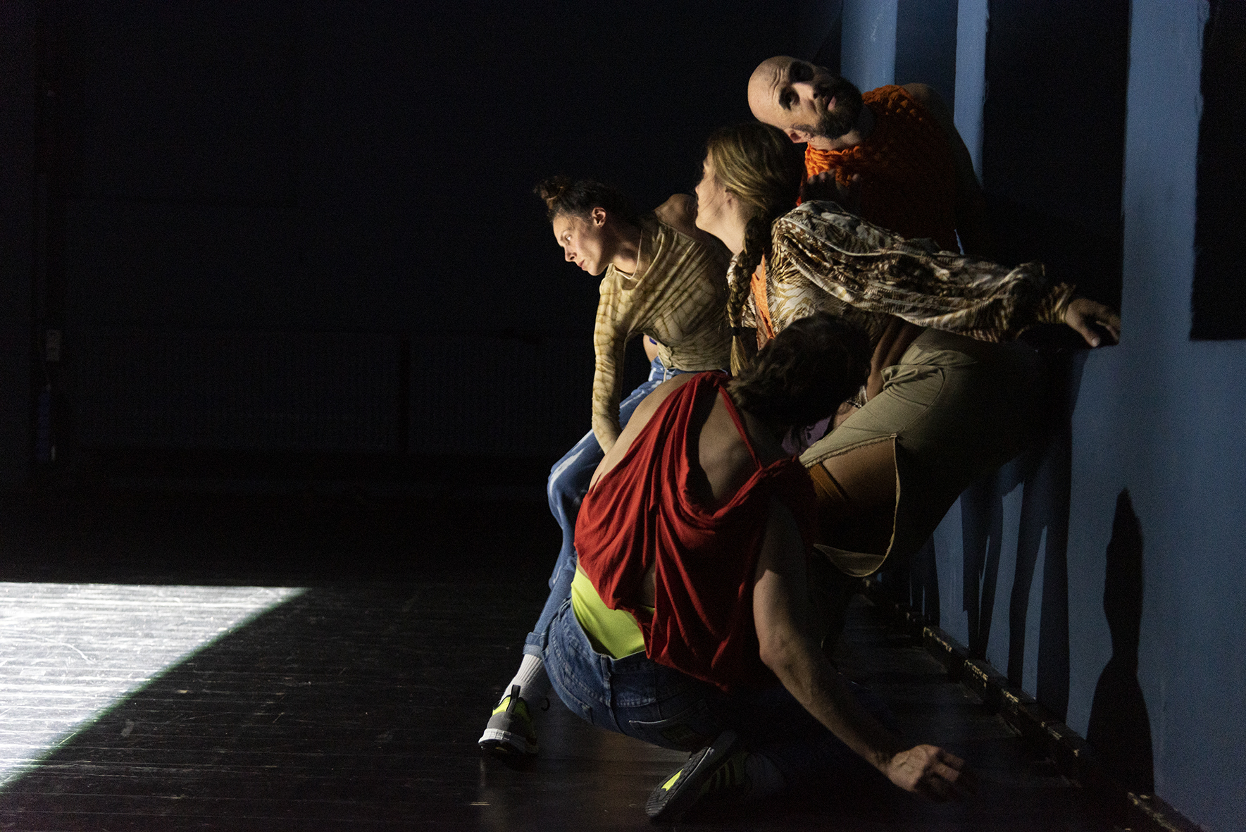 Neben dem Nachdenken über Fokusmöglichkeiten ist es in jedem Moment der Raum und Raum an sich, der befragt wird. Zwischen Nähe und Distanz suchen und finden die Performer*innen die Lücken und wirken mal wie Tetris-Teile, die sich „korrekt“ einpassen, mal wie Messinstrumente, die abtasten, wo die Grenzen liegen.
