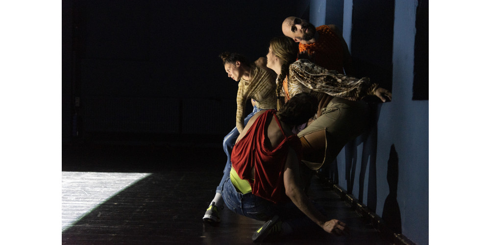 Die Besonderheit von „Chora“ (Premiere war 2023 in der Schweiz) liegt ganz eindeutig auf dem Zusammenspiel der Performance mit dem Licht und den Sounds in einem klar abgegrenzten Raum. Das erweitert eine simple Open-Air-Improvisation inmitten des Publikums zu einem offenen, unvorhersehbaren Gefüge, dessen Parameter sich permanent verschieben.
