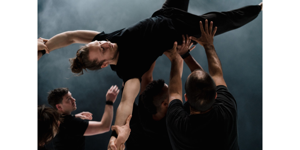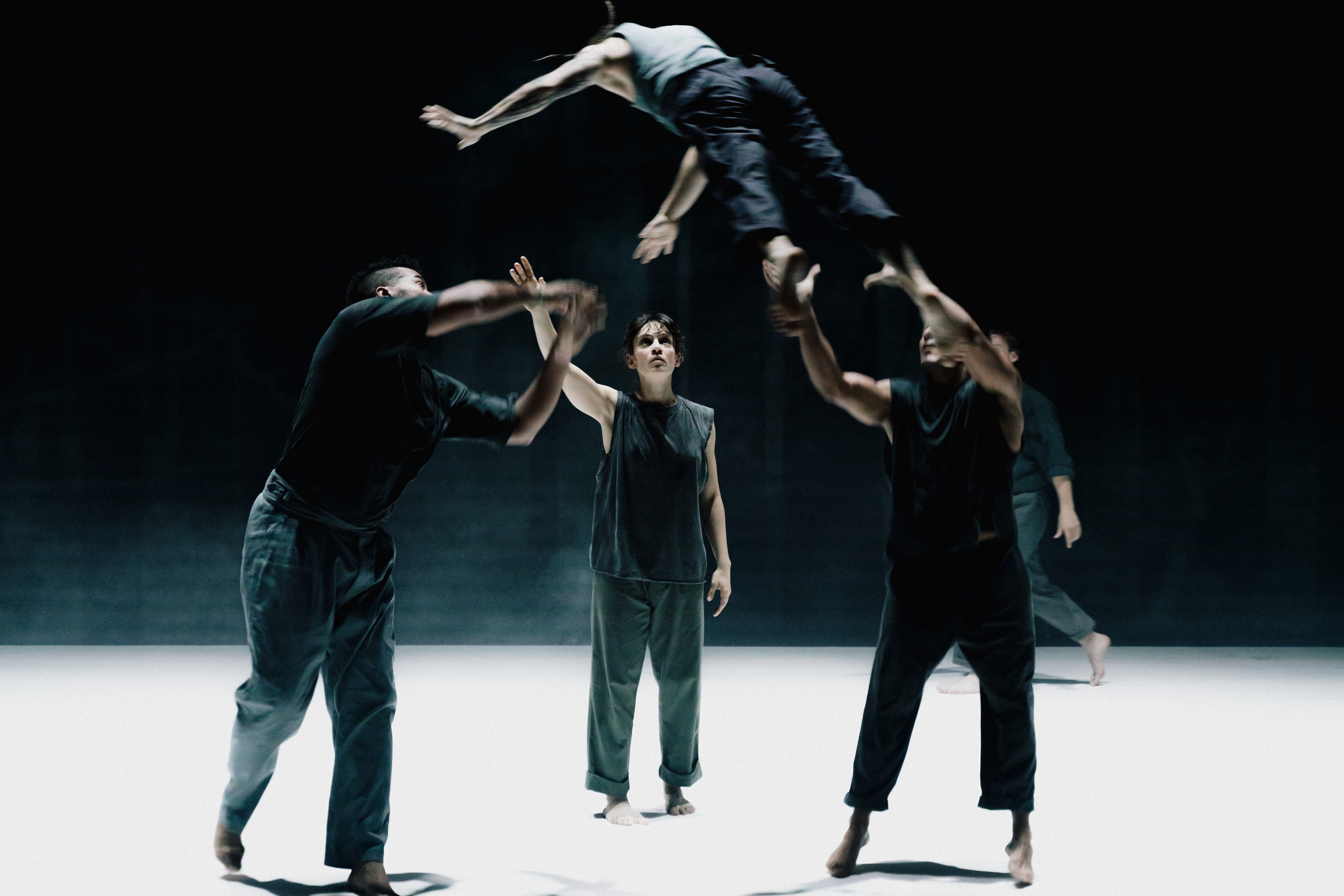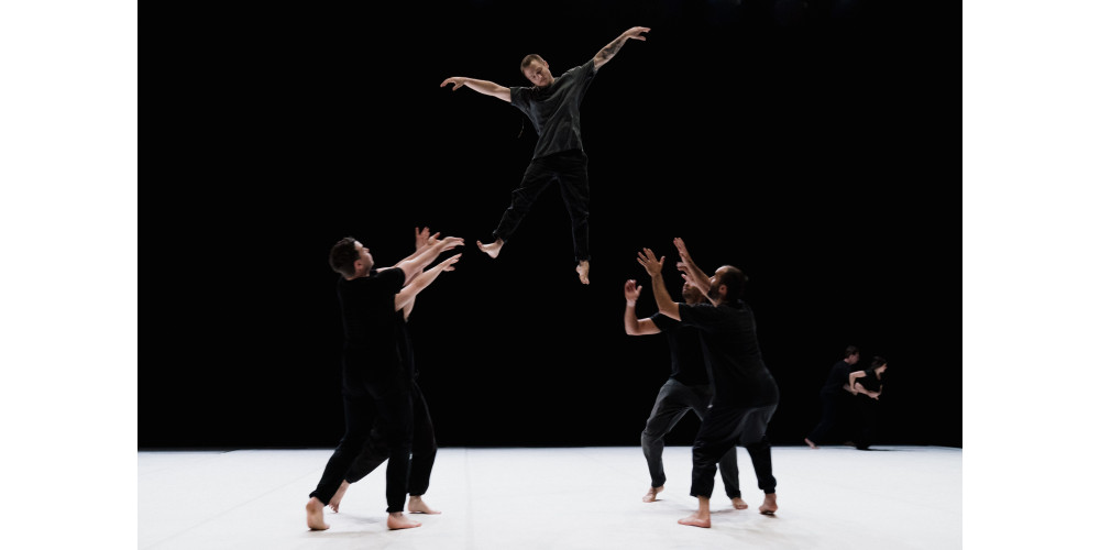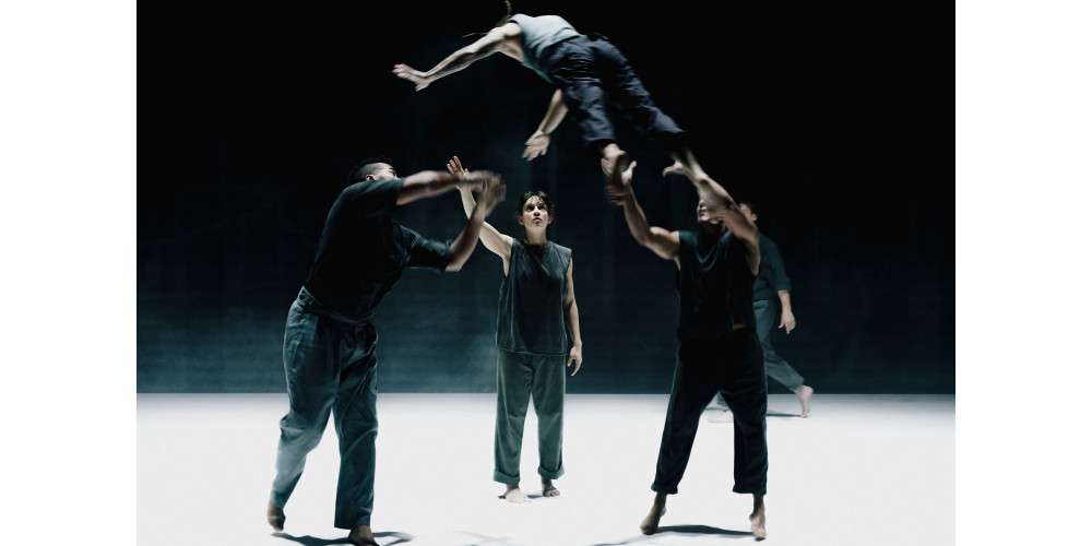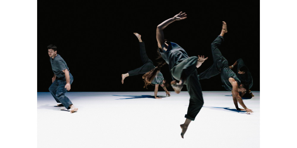 Rachid Ouramdane setzt auf die körperliche Kraft und Koordination seiner Tänzer*innen bzw. seiner Akrobat*innen, denn was er hier macht, schwimmt auch mit auf dieser aktuellen Welle des Neuen Zirkus, der Akrobatik und Tanz miteinander verbindet und es hier tatsächlich schafft, beides gleichwertig zu verbinden. Ein rasanter Ritt. Zu Beginn bewegen sich die Tänzer*innen gar in ballettartigen Hebefiguren und kreiselnd über die Bühne, aber die Formstrenge des Althergebrachten wird konterkariert durch die hohe Dynamik. Das Ballettartige kann diese Energieimpulse nicht fassen, alles bricht aus, und bald fliegen Körper durch die Luft, fallen von Schultern, hochpräzise gefangen zu werden. In die Gruppe greift ein Wirbelwind, der sie in atemberaubendem Tempo über die Bühne treibt. Menschen werden an Arm und Bein herumgewirbelt, und alles ballert wie ein Wirbelsturm auf die Zuschauenden ein.