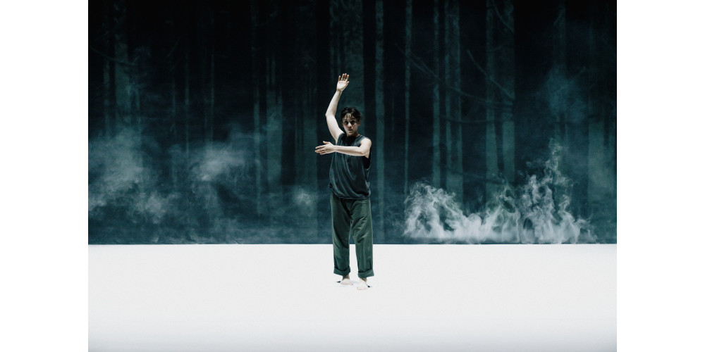 Dabei wechseln dramaturgisch ruhige Passagen die rasanteren ab, die dann vom Tanz in die Akrobatik wechseln und wieder zurück. Es ist schon atemberaubend, wenn die Truppe Menschentürme baut, bei denen bis drei Menschen zusammen auf den Schultern übereinander stehen oder wenn ein Artist einen einarmigen Handstand auf dem Kopf eines anderen macht oder Menschen meterweit durch die Luft geschleudert werden. Aber es ist eben auch kein artistischer Selbstzweck, sondern eingebunden in einen Rhythmus und eine mystische Suche, die auch durch die Projektionen, einem sich bewegenden Wald, unterstützt wird.