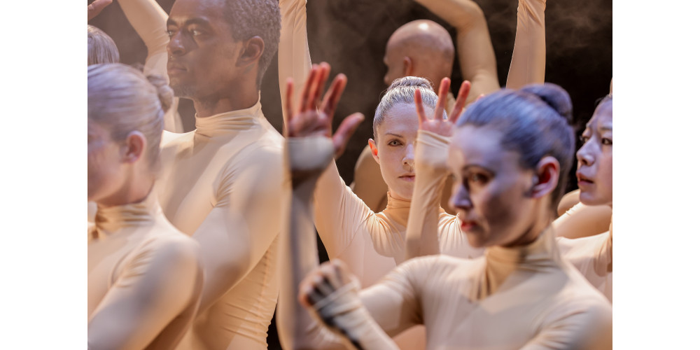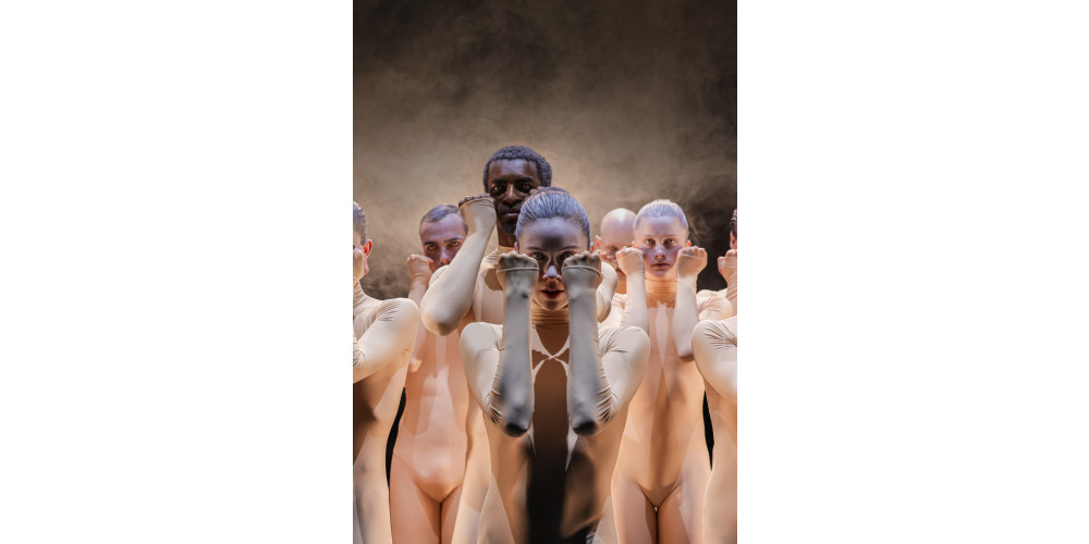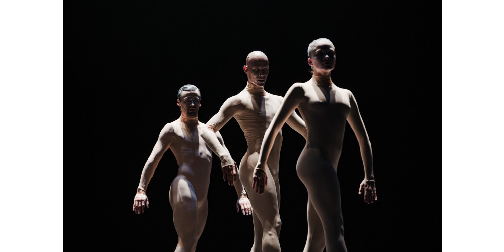 So einfach macht es sich Sharon Eyal nicht. Ihr „Corps“ besteht aus lebendigen Körpern, die in hautfarbenen Bodys, mit weißen Kontaktlinsen und enganliegenden Einheitsfrisuren zugleich an androgyne Aliens und futuristische Marionetten erinnern. Doch feiern sie in ihren gänzlich unterschiedlichen Körpern menschliche Diversität. Genauso weit gespannt ist das Bewegungsmaterial, das die israelische Starchoreografin so mühelos zusammenbündelt, dass es eine eigene Selbstverständlichkeit entwickelt: Das dominierende Laufen steigert sich zu exzessivem Marschieren, gebrochen durch klassisches Ballettvokabular und heidnisch anmutende Fruchtbarkeitsrituale. Die roboterhaften Unisono-Szenen, in denen das Ensemble des Hessischen Staatsballetts seine Klasse unter Beweis stellte, entfalten einen magischen Sog. Gebrochen wird er durch explodierende Bewegungsenergie in direkten Begegnungen und einzelne individuelle Ausbrüche – mal groß und augenfällig, mal klein und subtil. Unterdessen changiert die vom unerbittlich fordernden Rhythmus geprägte Musik zwischen elektronischem und synthetischem Beat, aufgebrochenen melodischen Fragmenten und hypnotischem Clubsound.
