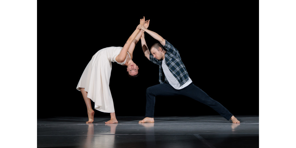 Es berührt, wie die beiden zumeist synchron agierenden Tänzer ihr Tempo und ihre Energie aufeinander abstimmen und so Geibels minimalistisch gehaltene, unprätentiöse, formal präzise Choreografie, die niemals die Emotion Oberhand gewinnen lässt, zum Ausdruck bringen. Umso packender wirkt dann der Wechsel, wenn Carotti mit erhobenem Zeigefinger und lauter Stimme ihre Familie damit vertrackt, wer den „Verrat“ begangen habe, oder dass Tante Dina lebe, obwohl diese längst tot ist.