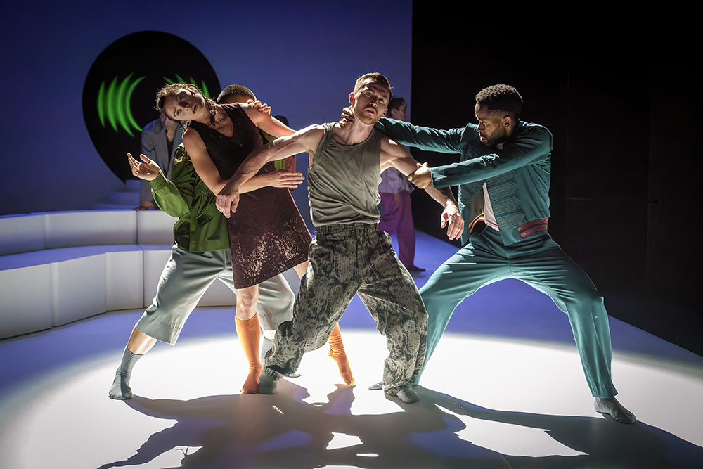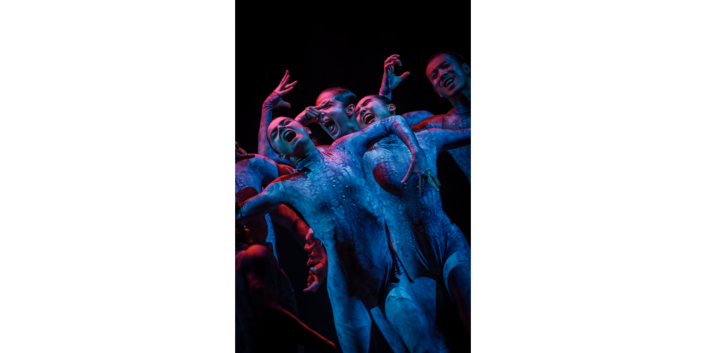 Während ein einsamer Hirsch an einem Teich seinen Durst löscht, landen außerterrestrische Wesen mit ihrem Raumschiff auf der Erde. Sie sind auf der Suche nach Wasser, das sie für ihren Lebensraum benötigen und das bei ihnen auszugehen droht. Der Hirsch – wunderbar gestaltet und getanzt, immer mit einer großen Maske mit Hirschgeweih (Bregje van Balen), beobachtet die fremden Gestalten. Zu Beginn noch unsicher und im Licht verschwommen, mit zuckenden, leicht bedrohlichen Gesten, nähern sie sich der neuen Lebensquelle. Sie bewegen sich erst animalisch, in sehr bodenbetonten Bewegungen. In ihrer Freude über die neue Lebensquelle beherzigen sie aber bald zeitgenössische Tanzstile von Disco und Musical. Mthuthutzeli November und wir erinnern uns dabei an Szenen aus dem Musical „The Lion King“. Haben die Aliens auf ihrem Planeten Youtube und Netflix geschaut?