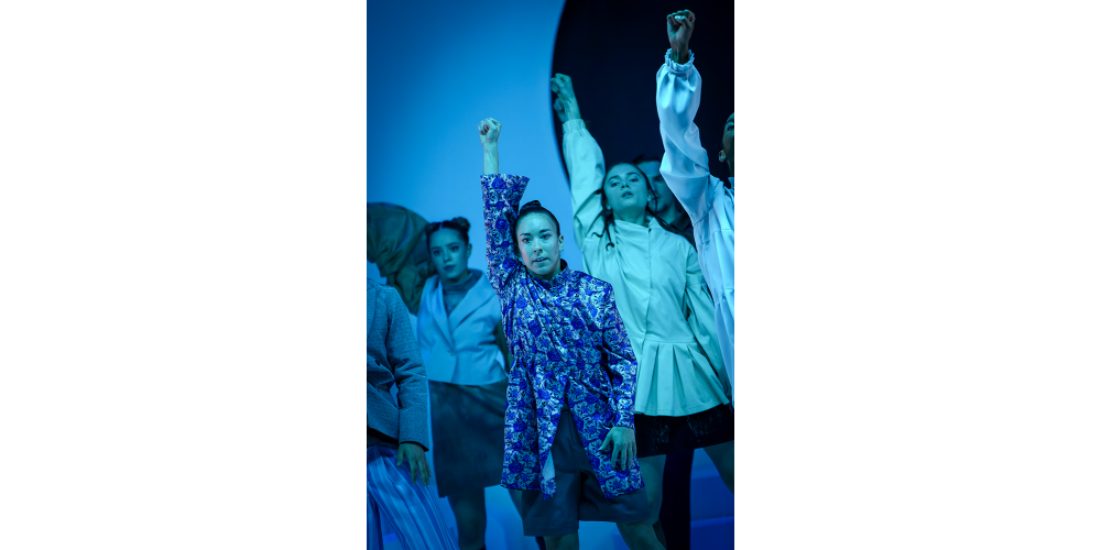 Auch in der zweiten Produktion des Abends geht es um Tierisches, zumindest dem Titel nach: „White Rabbit“ bezieht sich auf den 1967 entstanden gleichnamigen Song von Jefferson Airplane und den Hasen in „Alice im Wunderland“. Auch Phoebe Jewitt begann ihre Karriere am Luzerner Theater. In ihrem ersten Stück auf der großen Bühne geht es um die Hoffnung auf eine bessere Welt, eine, wie sie sich die Generation der 60er Jahre rebellisch erkämpft hatte.