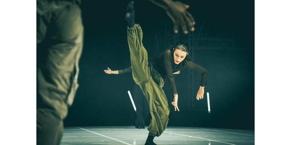 Fest steht: Dieser Raum ist grandios. Er atmet Weite und kreative Offenheit. Nur für den neuen, zweiteiligen Abend von Tanz_Kassel bringt er, man möge es kaum glauben, eine Einschränkung: Eyal Dadons „Shuv“, das Anfang Februar im Stammhaus seine Uraufführung hatte, muss hier ohne Drehbühne auskommen. Und der Unterschied ist relevant. Nur geht er, welch Glück, nicht auf Kosten der Qualität.