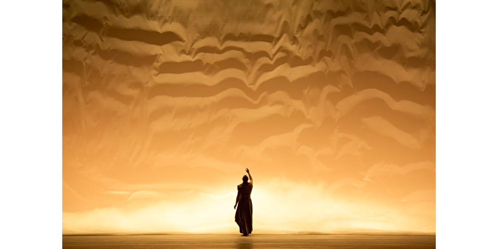 Deutlich stärker ins Innere gekehrt gestaltet Akram Khan sein „Vertical Road“. Dabei erstaunt es fast, dass die Semperoper von ihm bislang noch keine Arbeit im Repertoire hatte. Für Neulinge des Khan’schen Universums ist das ein wunderbarer Einstieg. Bekanntlich geht Khan mit seinen sensiblen Erzählungen immer sehr tief in die Gefühlswelt seiner Protagonist*innen. Hier ist es Jón Vallejo in der Rolle des Reisenden, der als Solist wahrscheinlich in einer Arbeit noch nie so wenig getanzt hat.