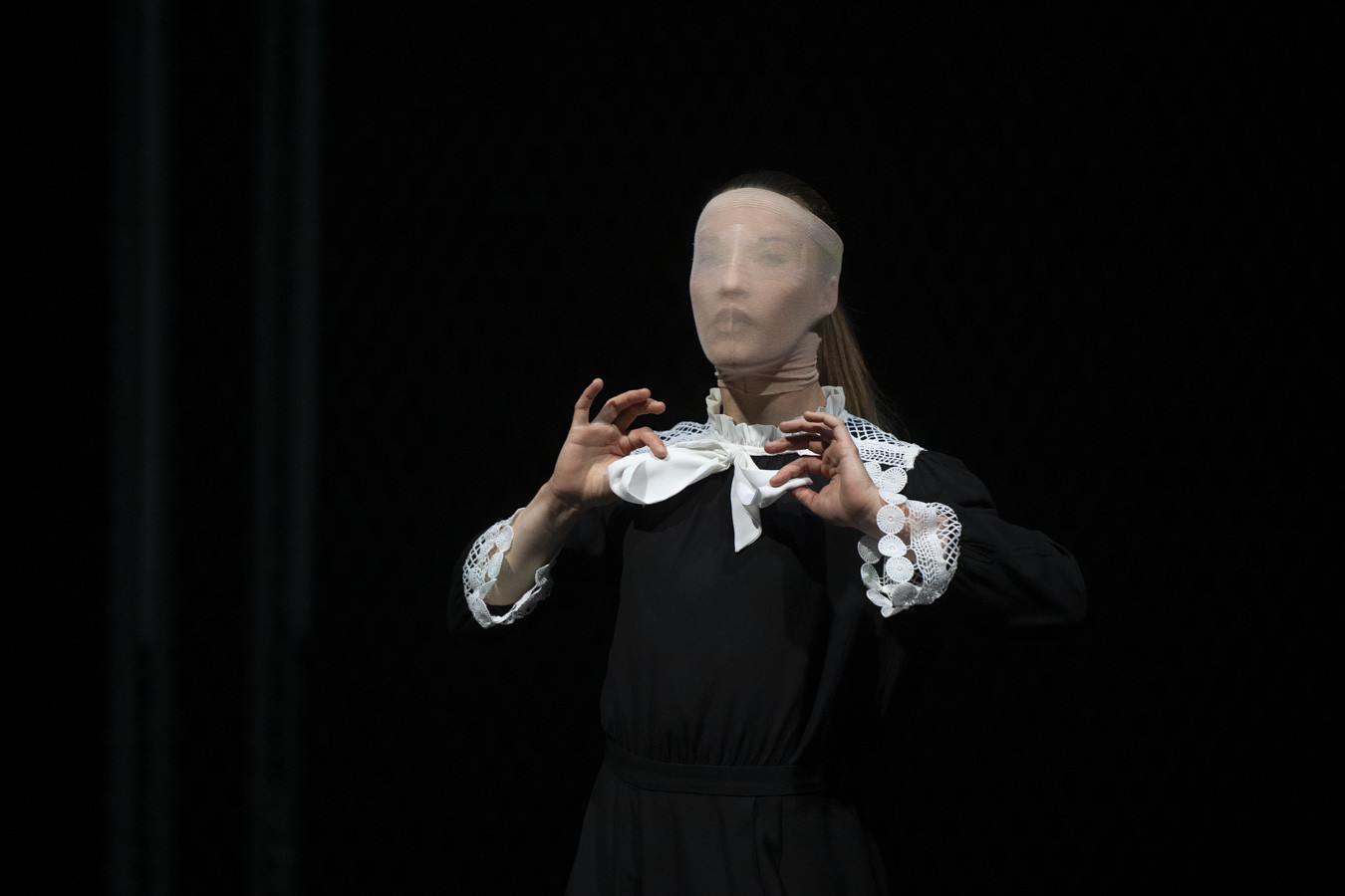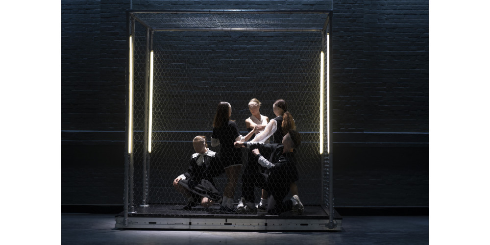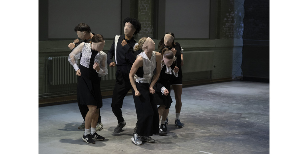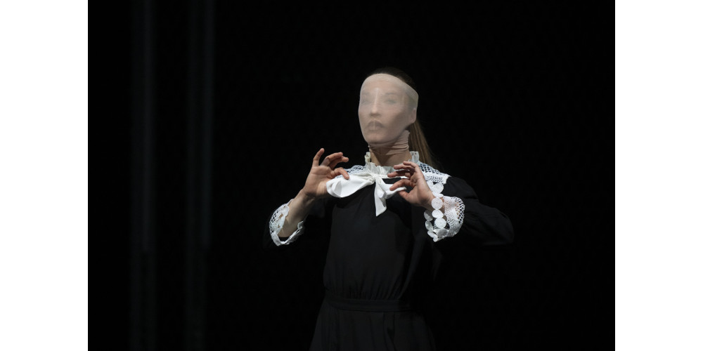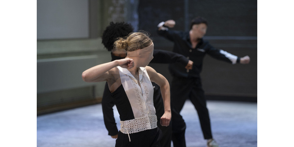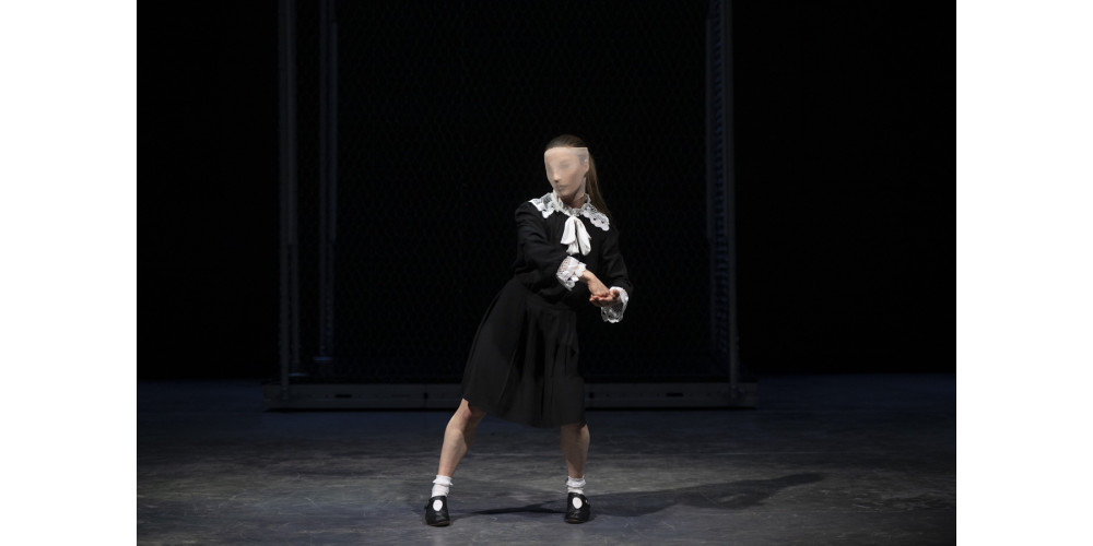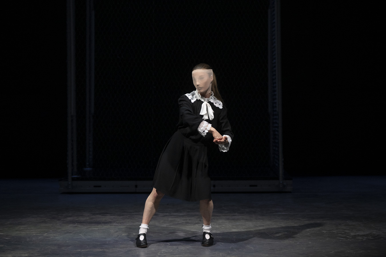 Dieses Mal ein spartanisches Bühnenbild. Lediglich die Rückwand der Bühne ist mit einem Netz bespannt. Ein fahrbares Podest, mit filigraner Zaunbespannung ist ein Hingucker und für den Autofokus der Kamera eine Herausforderung. Genauso wie die Gesichtsmasken, die den Fokus auf die Augen behindern. Aber Tanz ist ohnehin kein einfaches Metier für Fotografen.