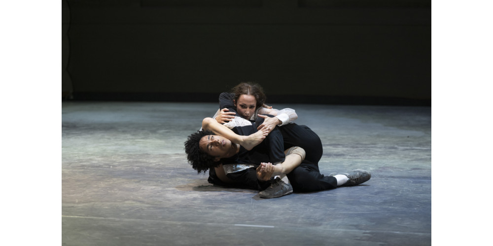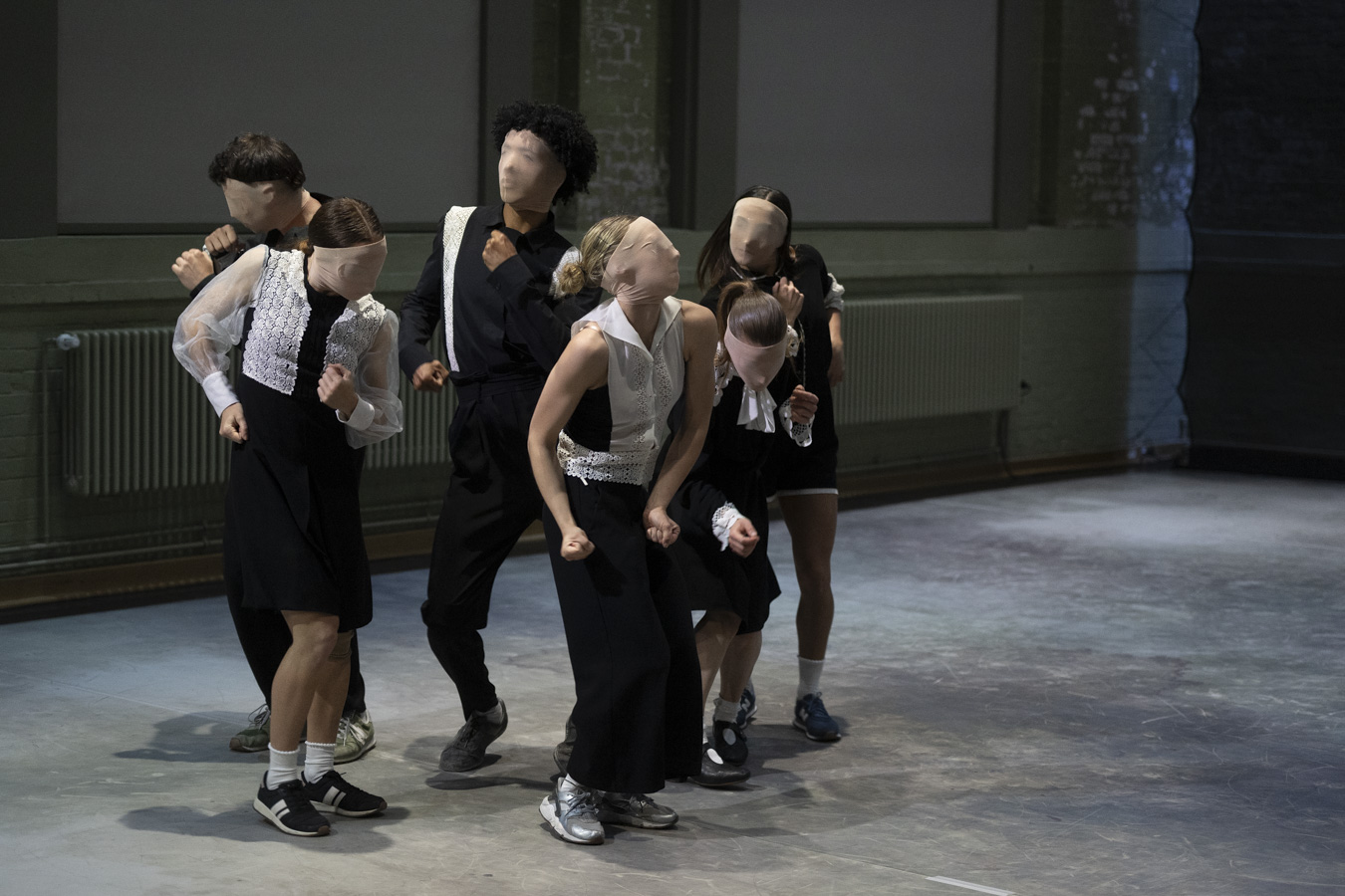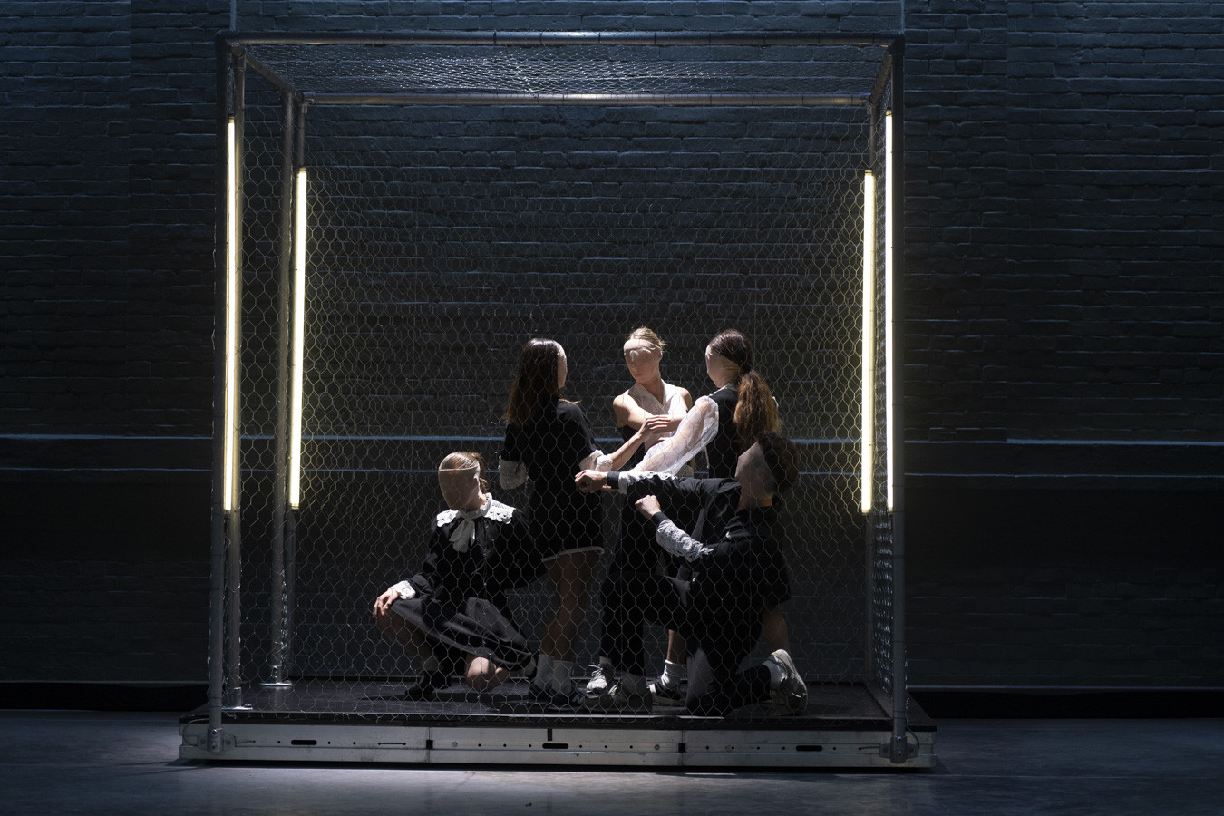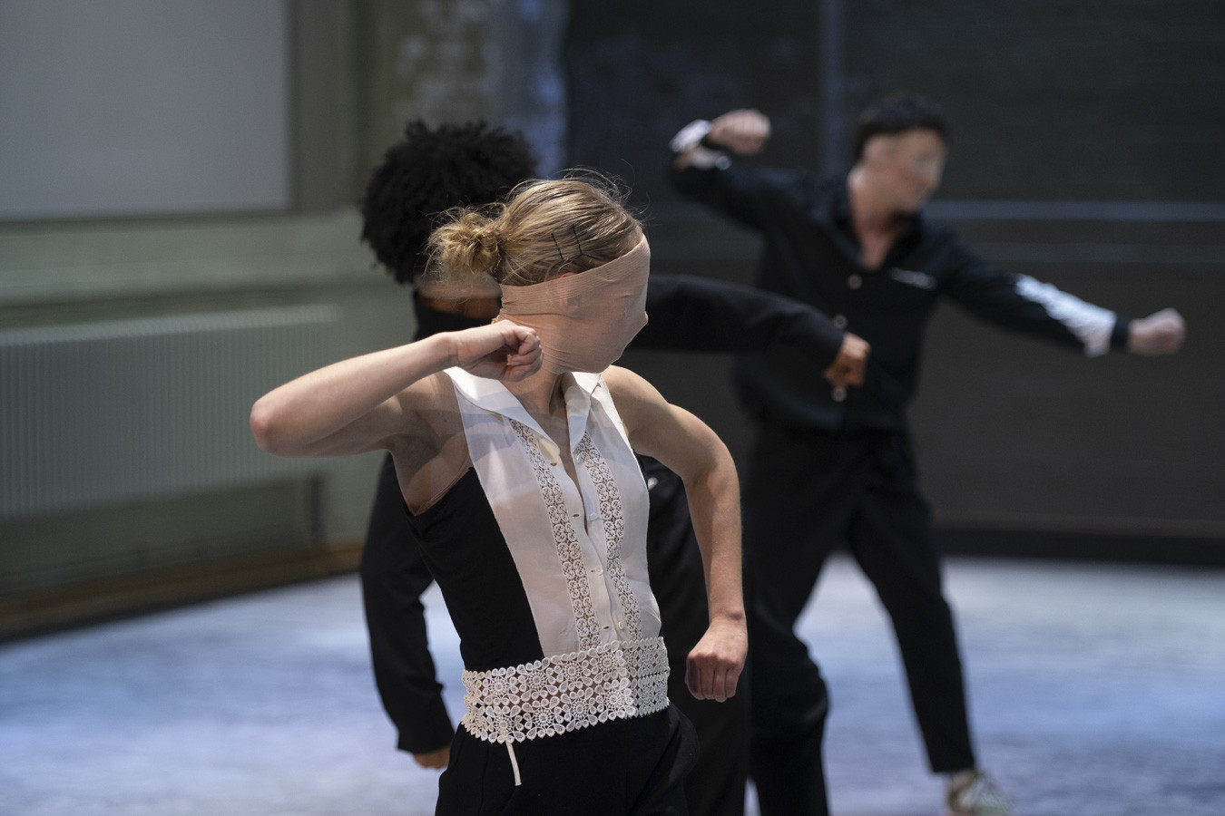 Dieses Mal ein spartanisches Bühnenbild. Lediglich die Rückwand der Bühne ist mit einem Netz bespannt. Ein fahrbares Podest, mit filigraner Zaunbespannung ist ein Hingucker und für den Autofokus der Kamera eine Herausforderung. Genauso wie die Gesichtsmasken, die den Fokus auf die Augen behindern. Aber Tanz ist ohnehin kein einfaches Metier für Fotografen.