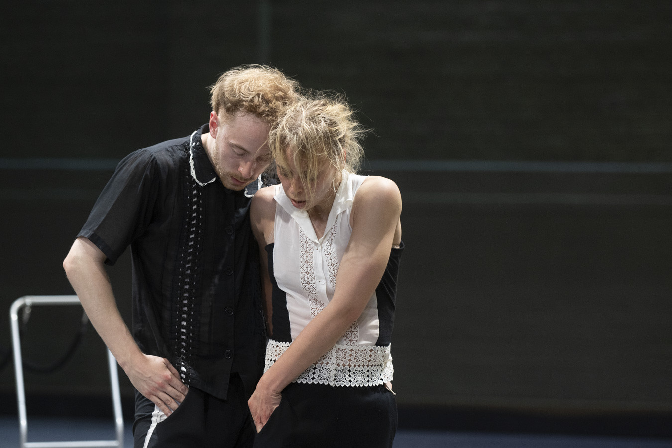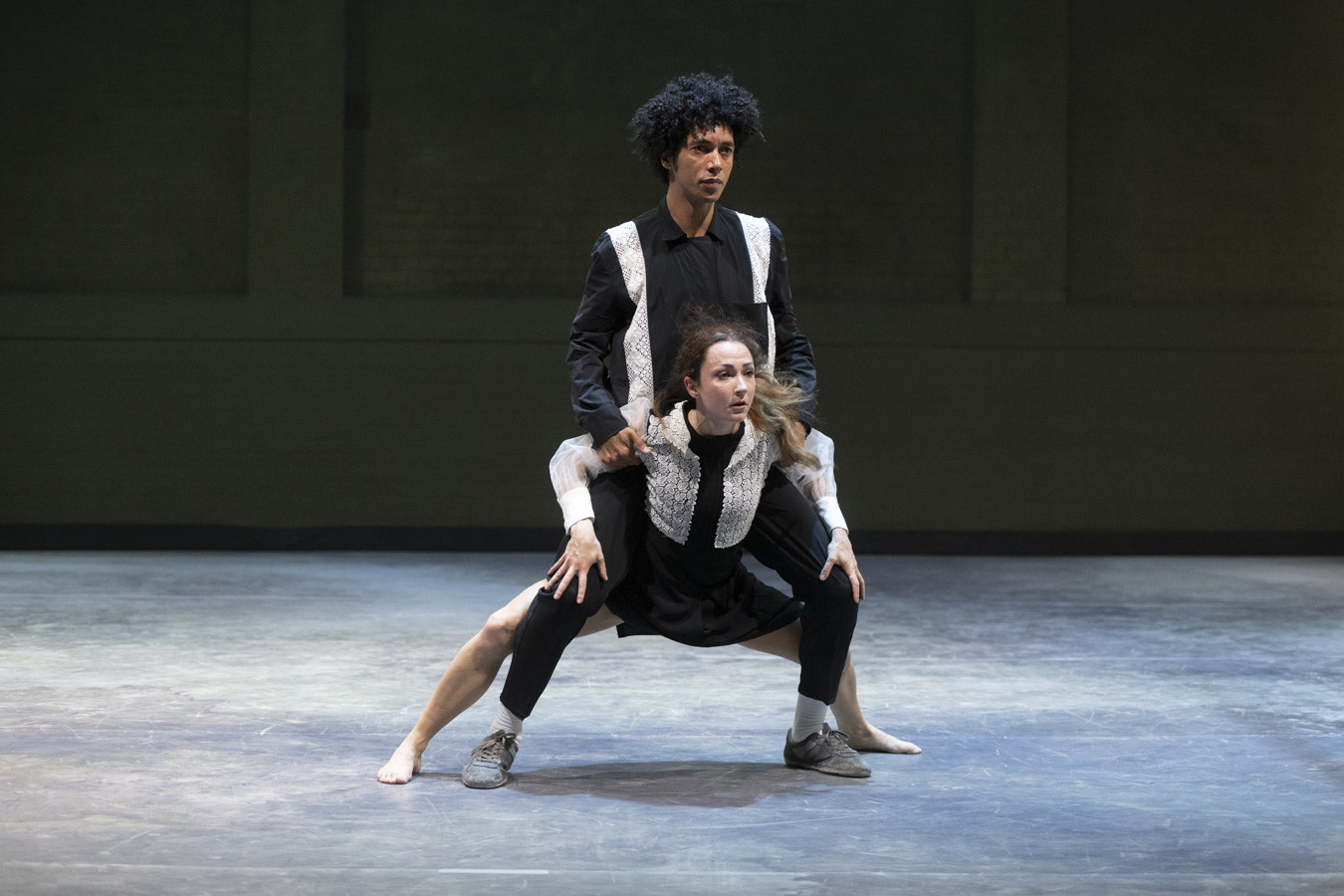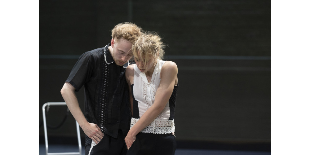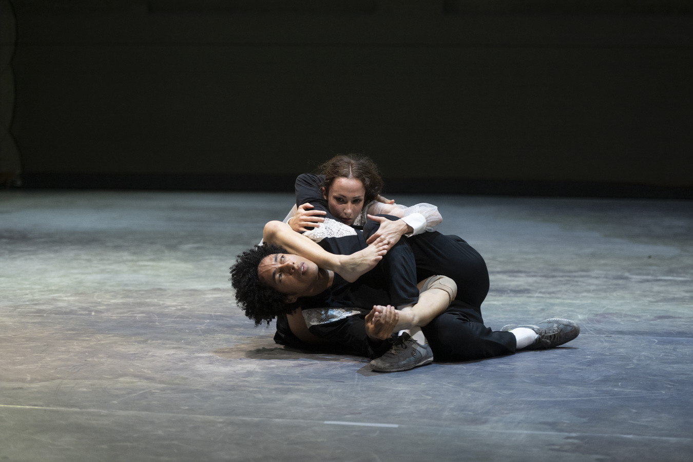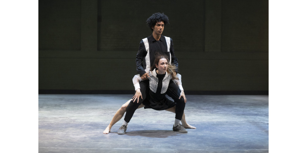 Dieses Mal ein spartanisches Bühnenbild. Lediglich die Rückwand der Bühne ist mit einem Netz bespannt. Ein fahrbares Podest, mit filigraner Zaunbespannung ist ein Hingucker und für den Autofokus der Kamera eine Herausforderung. Genauso wie die Gesichtsmasken, die den Fokus auf die Augen behindern. Aber Tanz ist ohnehin kein einfaches Metier für Fotografen.