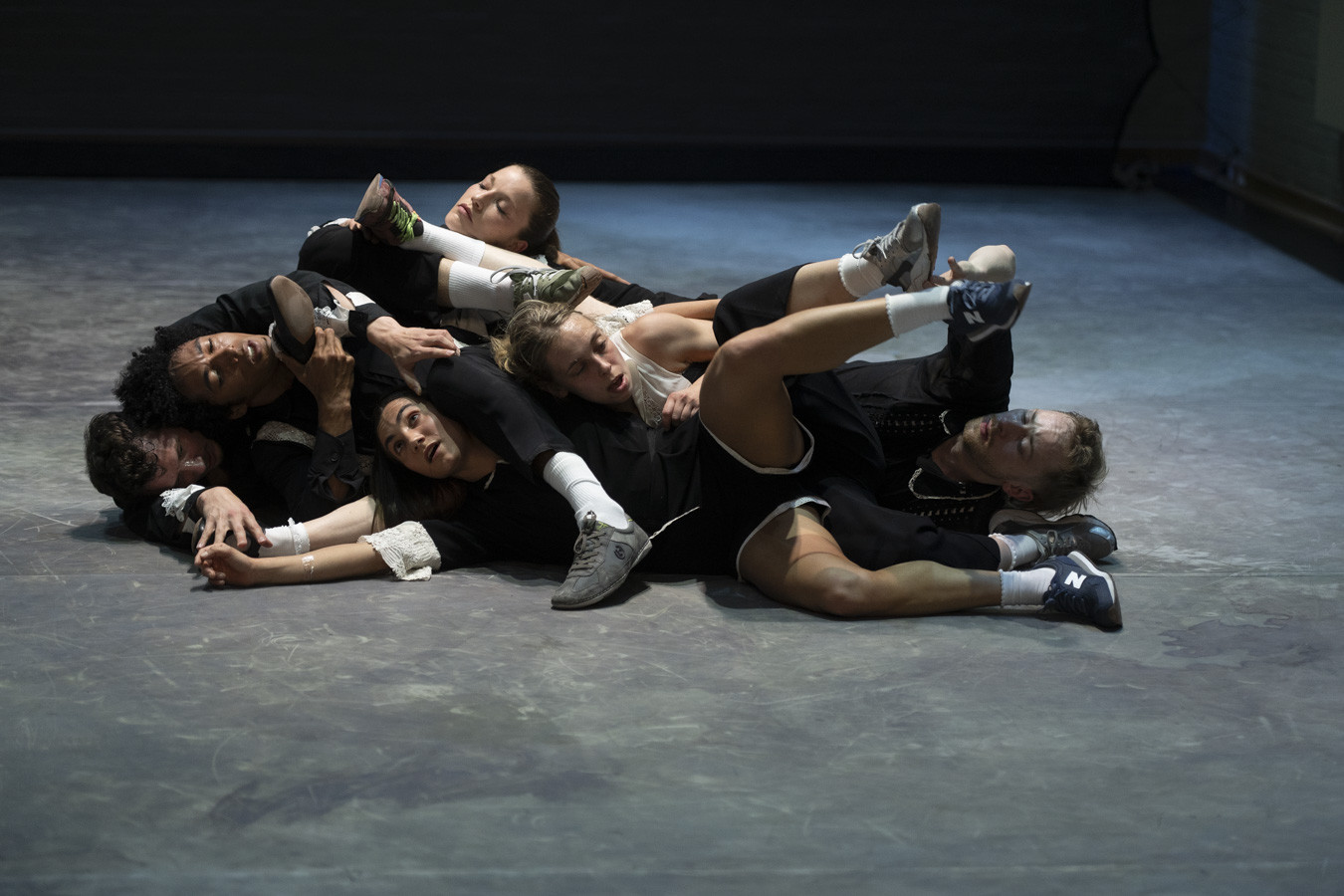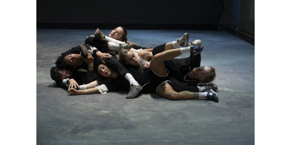 Der Tanz ist wie immer bei Toula Limnaios beeindruckend. Bewundernswert, wie sie es schafft, ihr Ensemble von vier Tänzerinnen und vier Tänzern zusammenzuhalten, zu verjüngen und mit ihnen auch alte Stücke am Leben zu erhalten. Nicht zu vergessen die vierkanalige Komposition von Ralf Ollertz, die ich bei einer Probe ohne Kamera richtig genießen konnte.