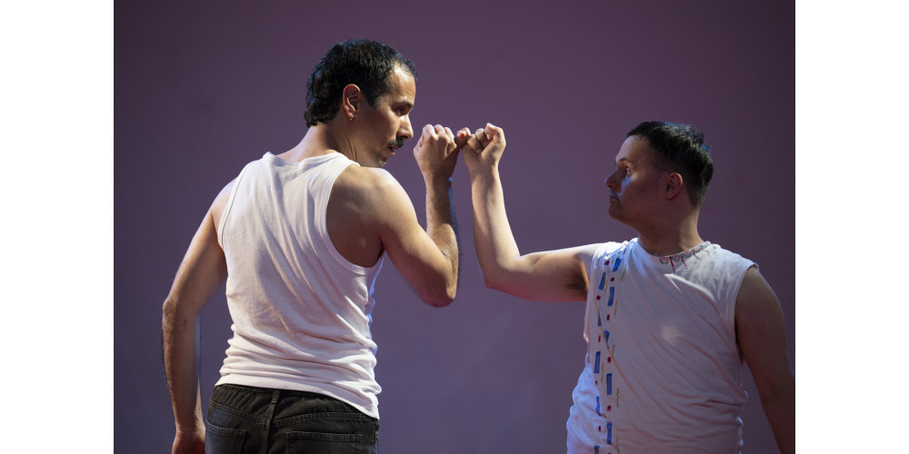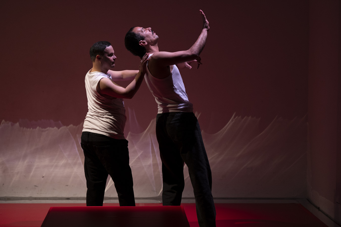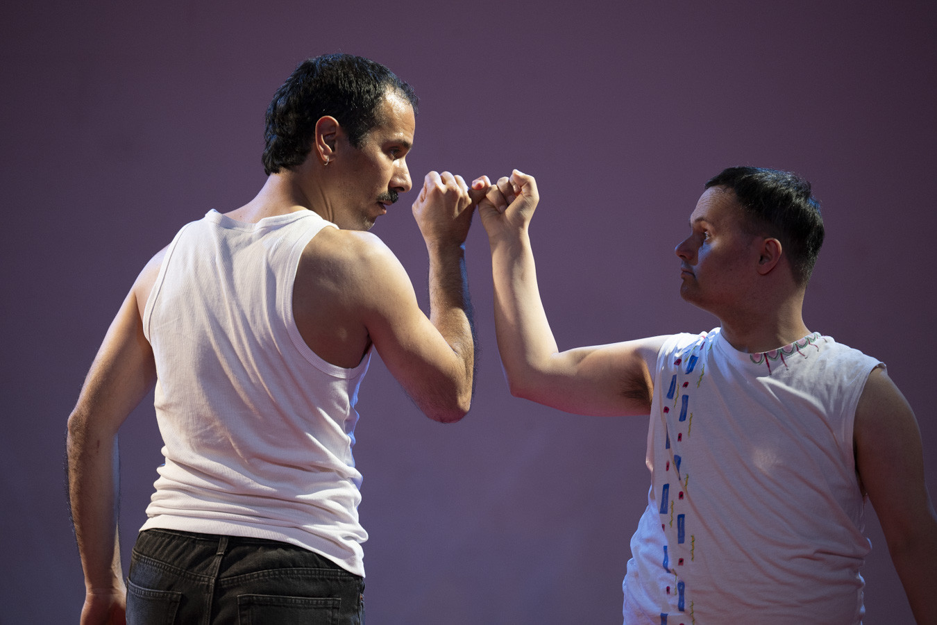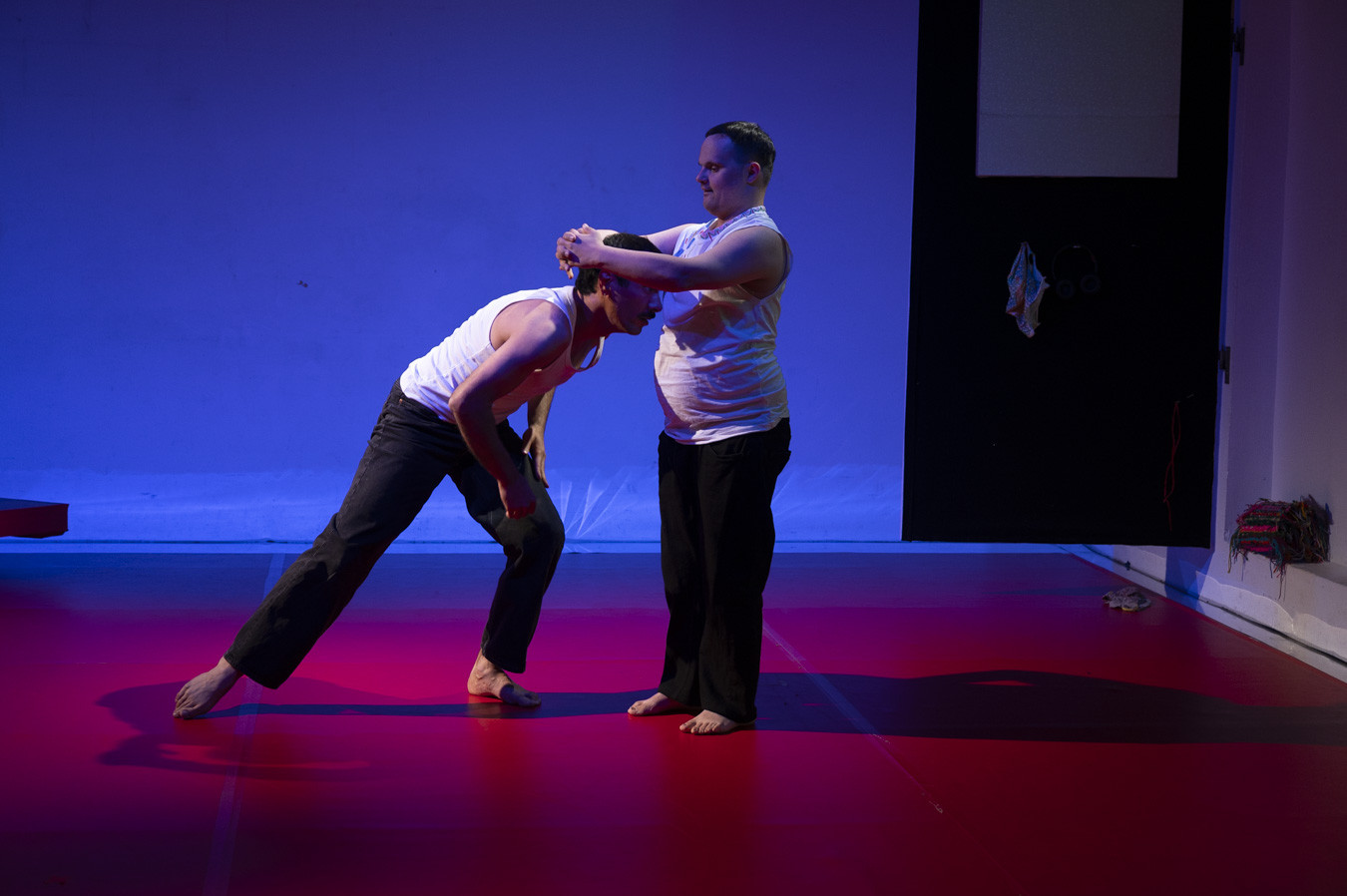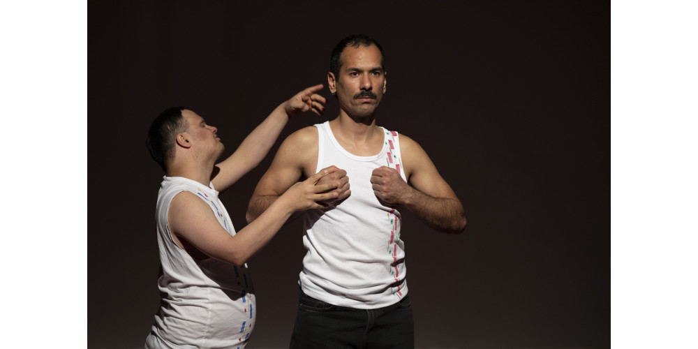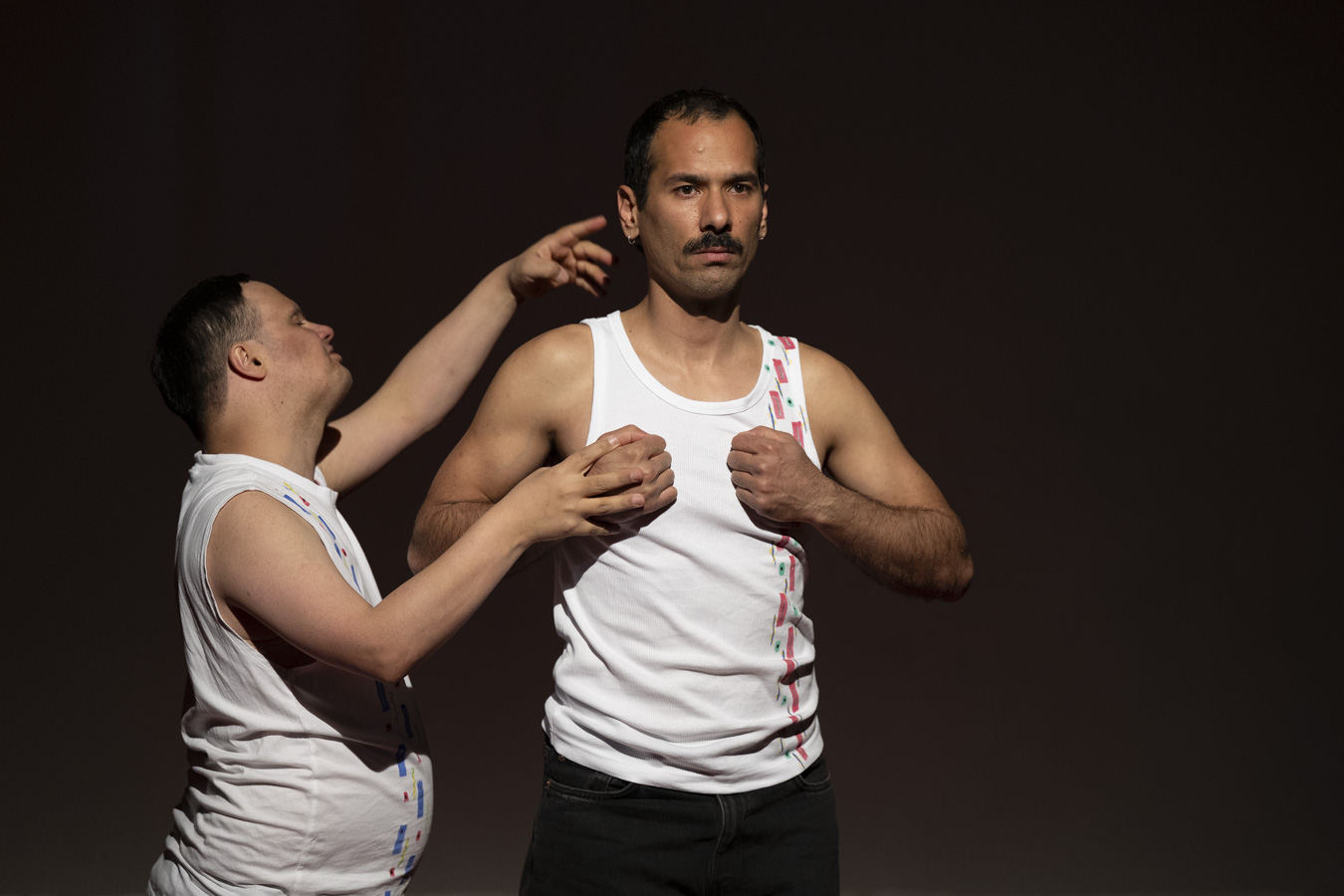 Das Theater Thikwa ist ein kleiner Tanzort in einem Kreuzberger Hinterhof, der mich immer wieder anzieht. Der Tanz ist gewissermaßen hautnah. Hier mit dem Tänzer und Choreografen Kaveh Ghaemi und dem Tänzer Addas Ahmad Mohammad. Ein außergewöhnliches intensives Duo in diesem Ort, in dem Künstler mit und ohne Behinderung gemeinsam und gleichberechtigt auf der Bühne stehen. Die Uraufführung war am 28.5.2025.