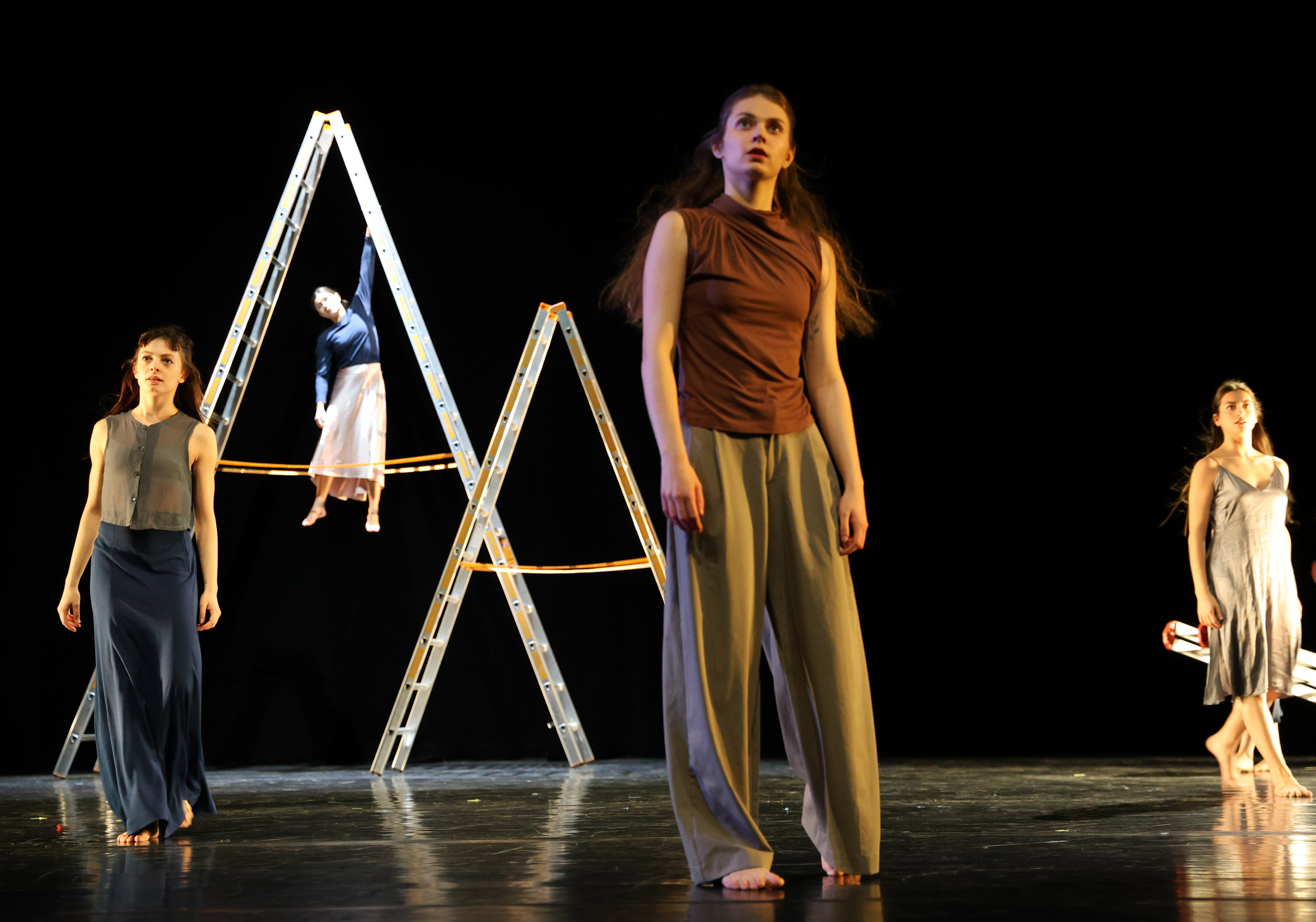Für mich ist es in jedem Jahr wieder spannend, wenn junge Choreograf*innen eigene Stücke in der Neuen Aula der Folkwang Universität der Künste in Essen dem interessierten Publikum vorstellen. In diesem Jahr waren es vierzehn Choreographien mit Soli, Duetten, Trios und Gruppenstücken der Studierenden des Instituts für Zeitgenössischen Tanz (IZT).