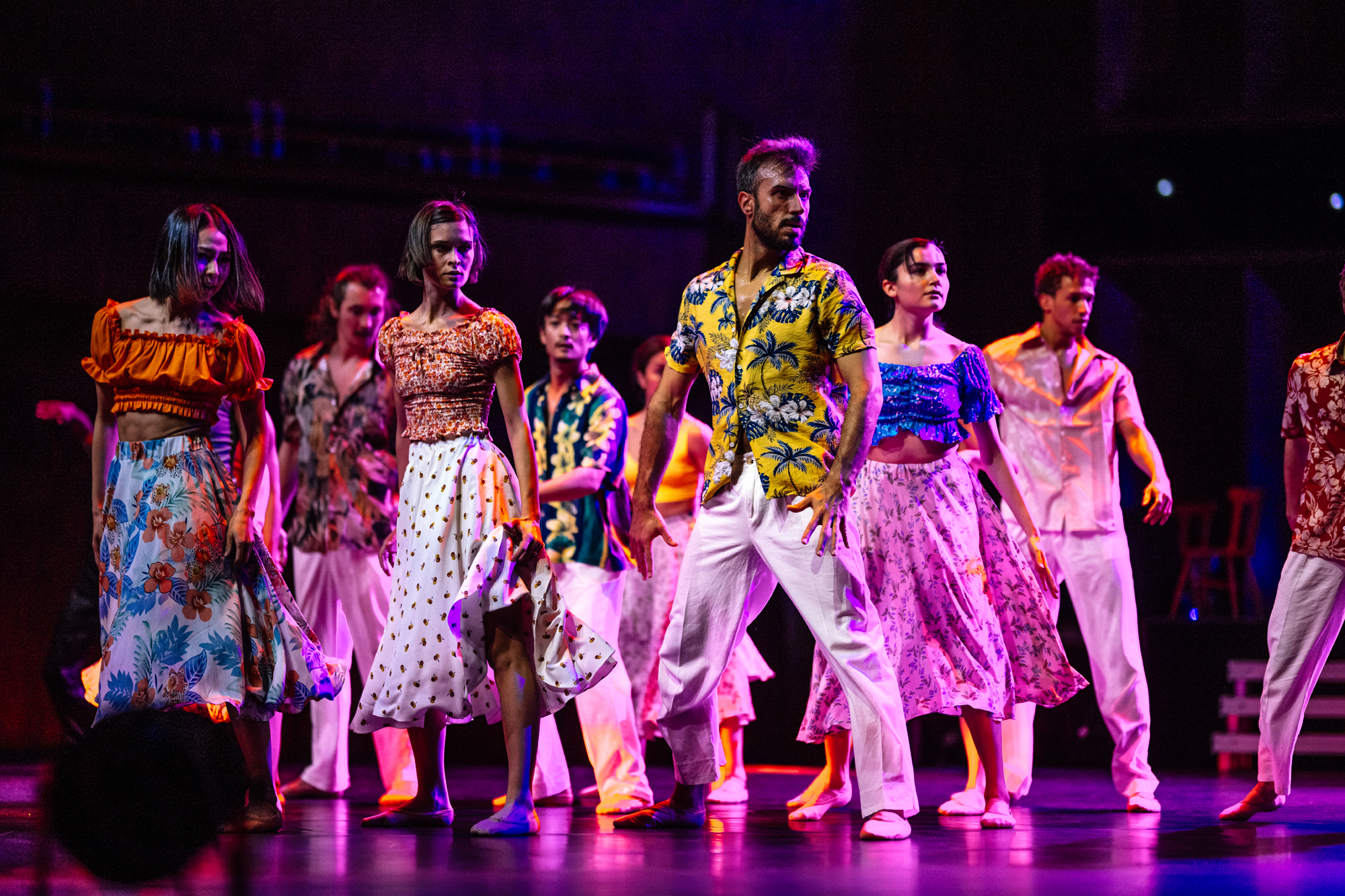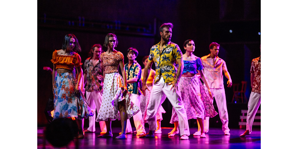 Auf der Grundlage des klassischen Balletts basiert Enrique Gasa Valgas Tanzstück mit einem breitgefächerten Kanon an Tanzstilen. Uraufgeführt wurde das Werk, das von Romantik und Melancholie geprägt ist, vor einem Jahr in Innsbruck im Rahmen des „Innsbrucker Winter Dance Festivals“. Die Biografie Bebo Valdés verläuft keineswegs gradlinig und unbeschwert. Mit der Machtübernahme Fidel Castros zieht der Musiker sofort Konsequenzen, denn Bebo Valdés sieht sich nicht mehr in der Lage, unter diesem Regime in Kuba seine musikalische Berufung auszuüben. Wie viele Künstler*innen, beschließt er, sein Heimatland, hier sogar seine Familie zu verlassen und nach einer Europatournée nach Stockholm zu emigrieren, um einen musikalischen und existenziellen Neuanfang zu wagen. Bebos Schicksal und das seiner Familie ist entbehrungsreich. Es ist dem Ideenreichtum Valgas, sowie der Virtuosität seiner „Limonada Enrique Gasa Valga Dance Company“ und der siebenköpfigen Band zu verdanken, dass diese Choreografie, die ein schwerwiegendes Thema wie Exil ins Zentrum stellt, das Publikum zu Begeisterungsstürmen mitreißen lässt. Das tänzerische Spektrum reicht von südländischen Gruppenformationen über Einlagen von kokettem Spitzentanz bis hin zu melancholischen (Solo)-Episoden. Bebos Seele (Nnamdi Nwagwu) mit Hingabe, athletischem Können und künstlerischer Gestaltung ist ein überzeugendes Beispiel. Die Fähigkeit, gekonnt zu stolpern mit waghalsigen Sprungkombinationen, um damit auf die Alzheimer-Krankheit des Protagonisten anzuspielen, ist beeindruckend und auch nicht ganz ungefährlich.