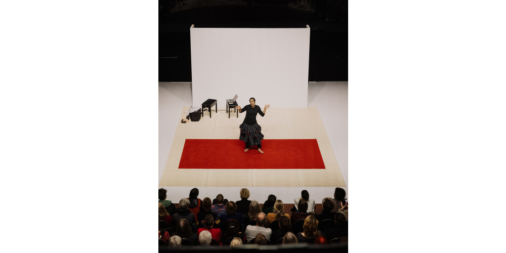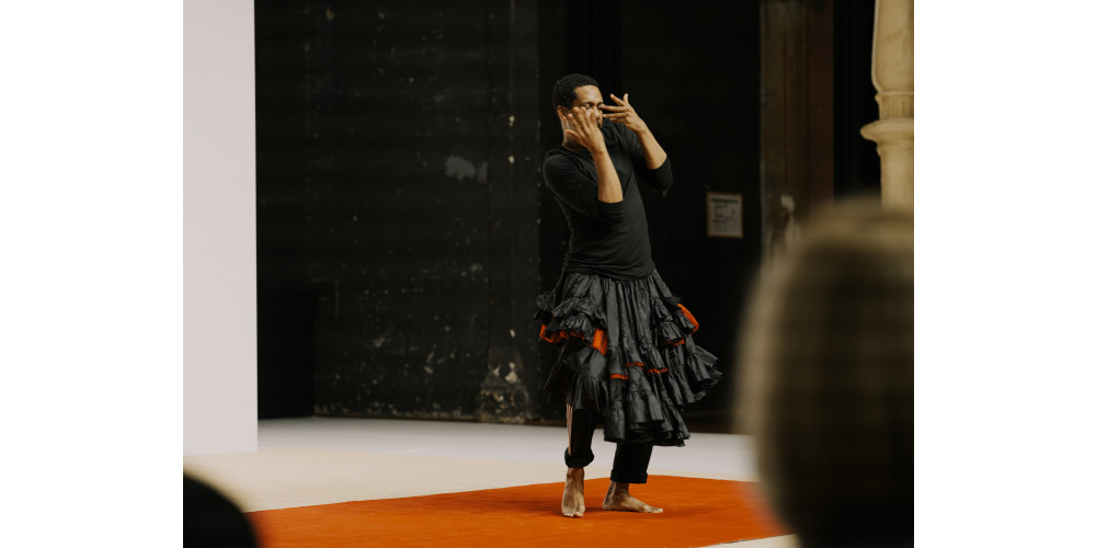 Am Ende gibt es Luftküsse für alle. Tänzer und Choreograf Trajal Harrell lieferte den Abschluss der Euro-Scene Leipzig 2025 in der ausverkauften Schaubühne Lindenfels. Harrell zeigte sein 2019 entstandenes Solo „Dancer of the year“. Darin zeigt er knapp 60 Minuten lang seinen tänzerischen Stil: In wechselnden Kostümen vibed er über einen roten Teppich. Harrells Herkunft aus dem Voguing liest sich hier wie eine ganz private Performance, in der er im stillen Kämmerlein zu verschiedenen Musiken, die er selbst über den Laptop auswählt, Dinge einfach ausprobiert. Aber nicht, ohne sich am Ende umso stärker dem Publikum zuzuwenden - mit Luftküssen zu Joe Hisiashis „A Feather in the Dusk“, wobei er jeden Zuschauenden einzeln bedenkt. „Ich werde vielleicht nicht durchkommen, aber ich versuche es“, kündigt er das Vorhaben an, und tatsächlich ist der Song am Ende der fünften Reihe zu Ende.
