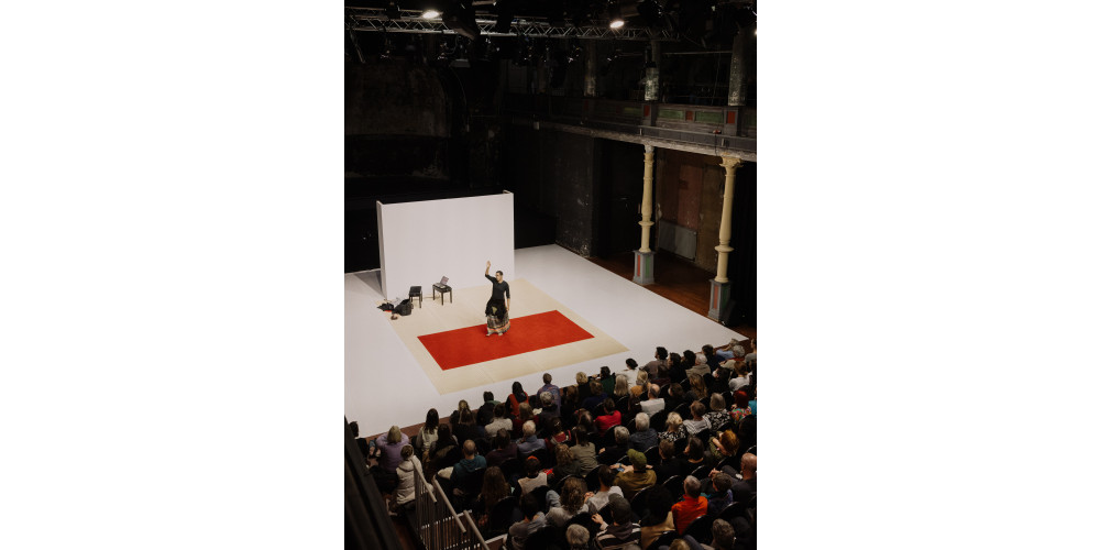 Die Arbeit ist freilich schon etwas älter. 2018 hat das Magazin Tanz ihn damals mit der titelgebenden Auszeichnung bedacht, das Heft aber habe er nie erhalten, witzelt er im Gespräch. So gibt diese Arbeit von heute aus gesehen vor allem einen Blick darauf, was da kommen wird. All die Elemente, die seinen Weg die nächsten Jahre prägen sollten, sind hier angelegt in einer Art Wohnzimmerversion, selbst zwei Klavierhocker sind schon dabei.