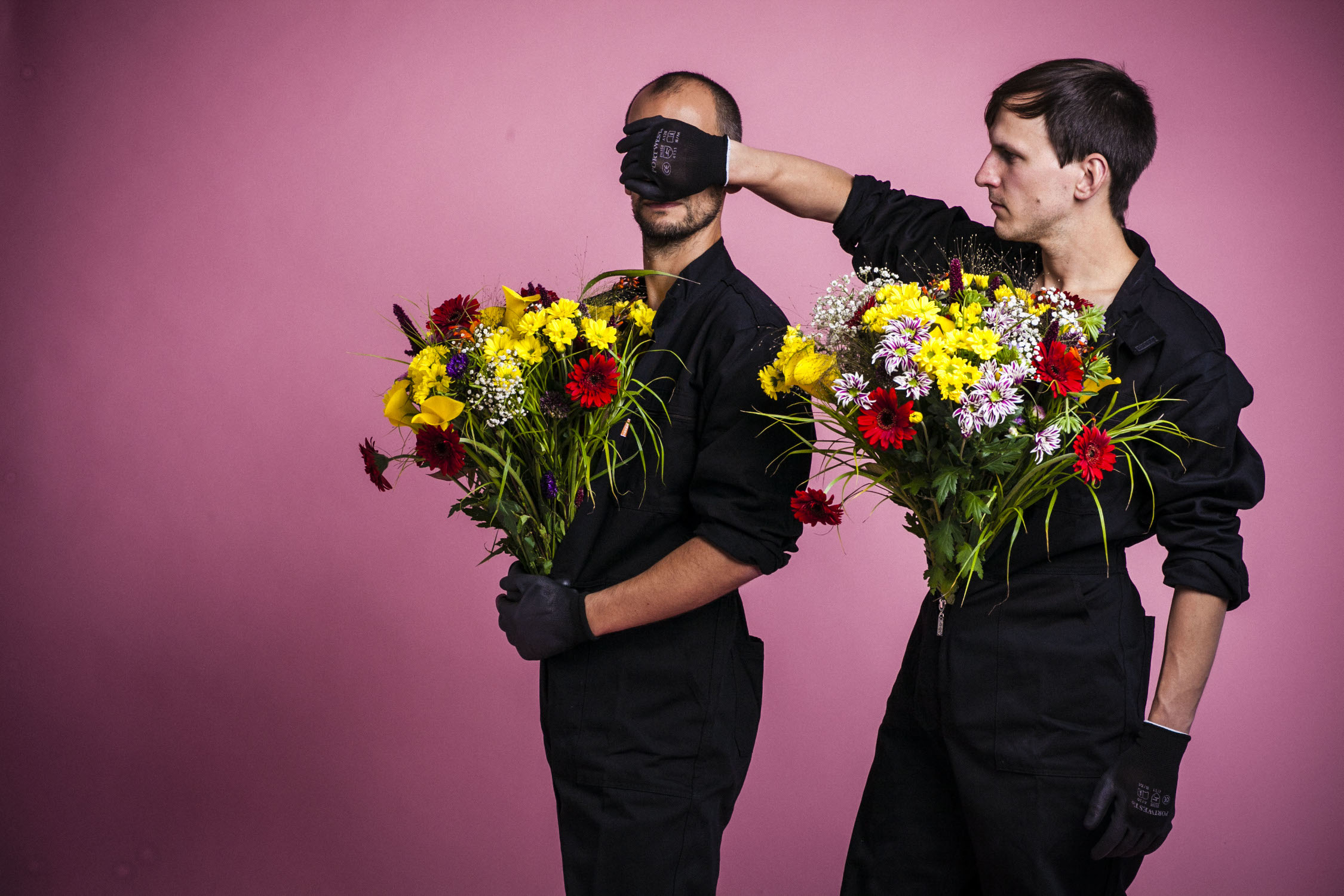 Eine Spionage-Spiegelfolienwand trennt das Publikum von den beiden Akteuren Bruce und Clark. Sie können uns nicht sehen, wie uns die allwissende Stimme aus dem Off (Fabian Schulz) wissen lässt, aber wir beobachten ihren Alltag. Anfangs hat es noch den Anschein, als würden die Zwei selbstbestimmt handeln und die Stimme nur das kommentieren, was geschieht. Aber bald wird klar, dass die beiden gar keine Kontrolle haben – weder über ihre Handlungen noch über ihre Emotionen und Körper. Wie Marionetten tanzen sie mal in Normalgeschwindigkeit, mal in Slow Motion einen Wiener Walzer auf Drehstühlen. Die schnell wechselnde Musik zwischen Horrorfilm und Schlager treibt das groteske Spiel auf die Spitze. Man sprüht sich gegenseitig mit Axe Deo ein, wechselt die Rollen, tauscht Zärtlichkeiten aus, kämpft miteinander.