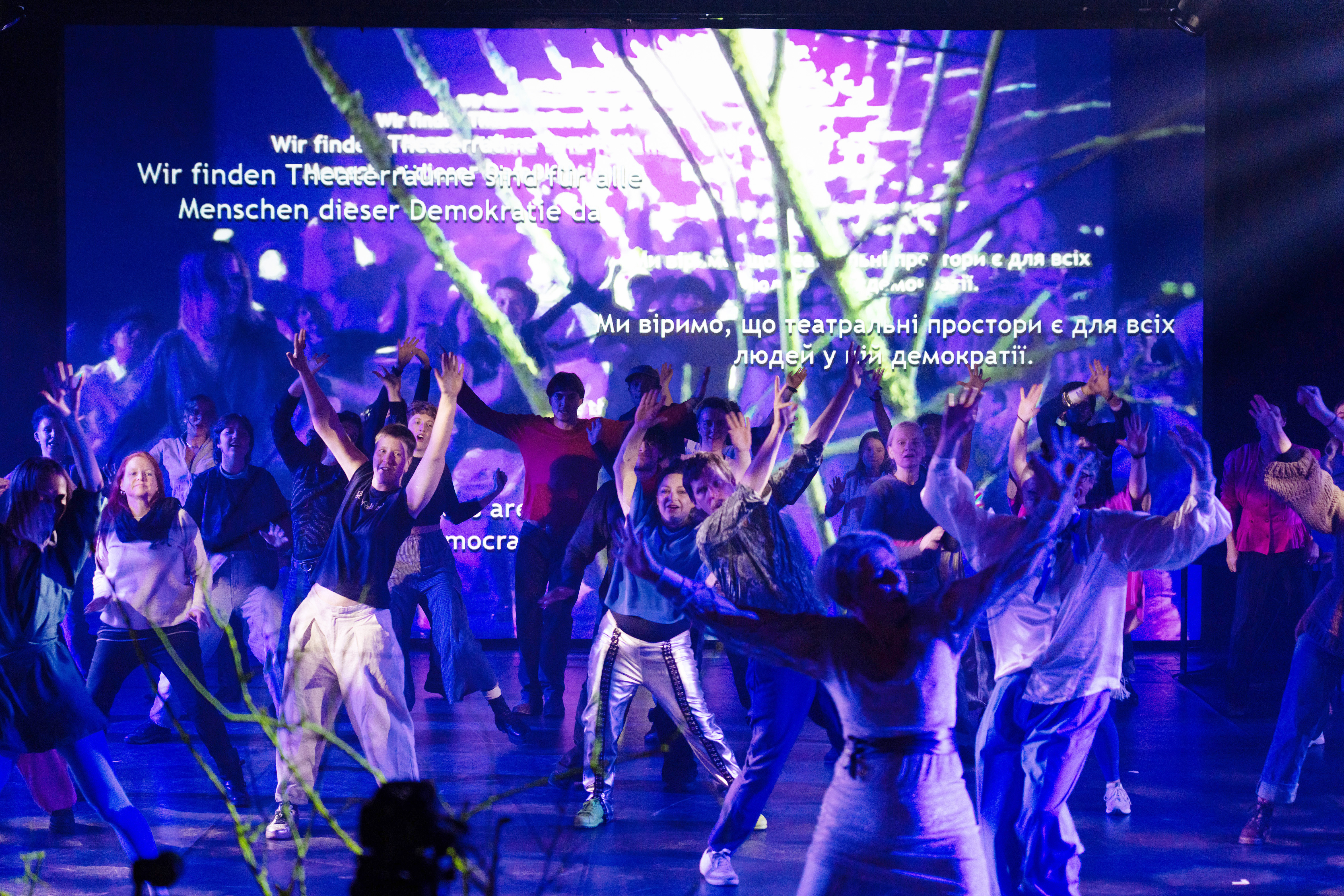 So ganz überzeugen kann der Abend nicht, denn bei aller Dynamik und Kurzweiligkeit ergeben sich doch Längen in den repetetiven Mustern des 90minütigen Stücks, zumal sich zusammen mit den unvermeidlichen Grußworten in der Interimspielstätte Agora des Leipziger Schauspiels der gesamte Abend etwas zieht. Der Start und das Ende allerdings können sich hören lassen. Zweimal Blasmusik der Leipziger Brassbanditen (zum Start) und der Combo Sogenannte Anarchistische Musikwirtschaft, die zwischen Brecht, Pop und Rio Reiser changiert. Dieses Festival startet mit Pauken und Trompeten. Das spricht eher nach Grenzen niederreißen denn aufrichten – mit Musik und mit Tanz. Oder um es mit der Band Ton Steine Scherben zu sagen: „Kommt zusammen Leute, lernt euch kennen...“