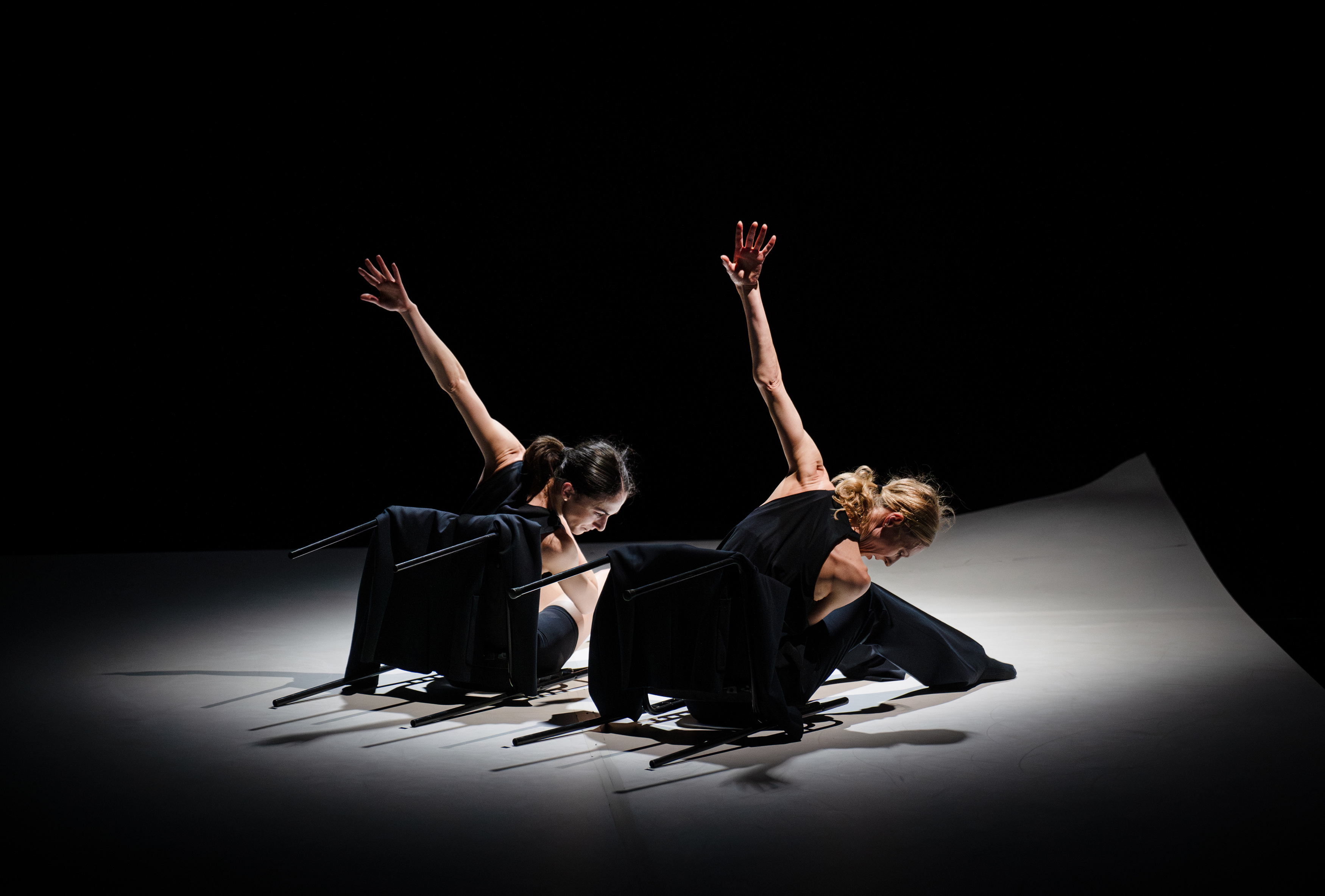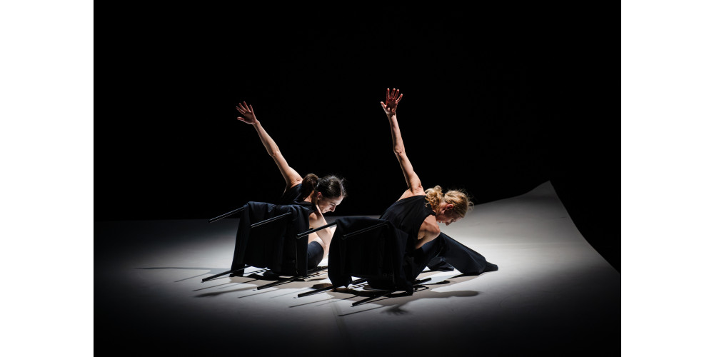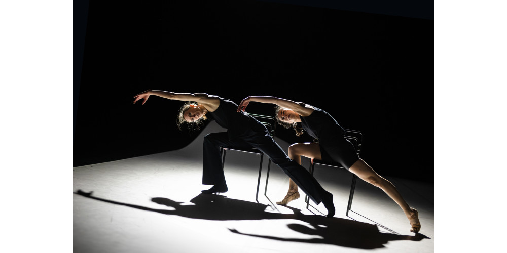 Auch der Tanz scheint zu perlen – Kevin O‘Day setzt seine beiden Ballerinas erst auf Strümpfen, später auf Schläppchen in Szene, unspektakulär und neoklassich-elegant. Der erste Teil ist geprägt von vielen synchronen, manchmal zeitversetzten oder gespiegelten Sequenzen; im zweiten Teil dürfen die ungleichen Darstellerinnen individuelle Stärken ausspielen. Dabei schlägt der Choreograf aus der unterschiedlichen Ausstrahlung feinfühlig Kapital: Die hochgewachsene, blonde Veronika Kornová-Cardizzaro, jetzt im schwarzen langen Kleid, jeder Zoll ihres Körpers unter zeitlos-eleganter Kontrolle, kontrastiert wie gecastet mit der kleineren, dunklen Alba Nadal, einem ebenso eleganten Kraftpaket in schwarzem Trainings-Outfit.
