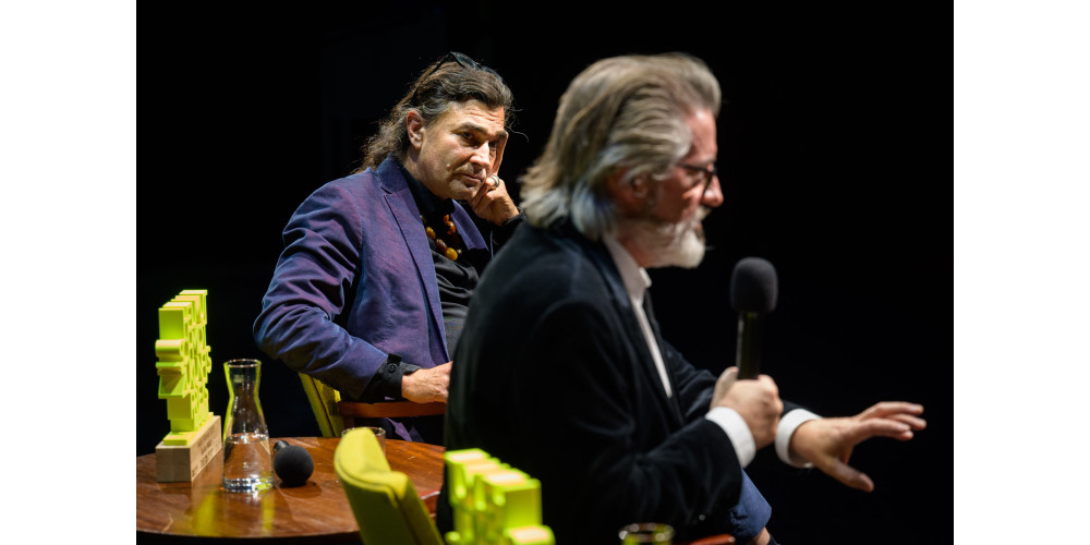 Da Sasha Waltz selbst krankheitsbedingt nicht zur Preisverleihung ins Hamburger Thalia-Theater kommen konnte, war ihr Mann Jochen Sandig angereist, der im Gespräch mit Uwe Heuser betonte, dass Sasha Waltz‘ Kunst immer von einer wahrgenommenen Realität ausgehe. Am Anfang sei immer der Raum, und der sei variabel. Künstler seien ebenso Raumpioniere wie Sozialforscher und Architekten.