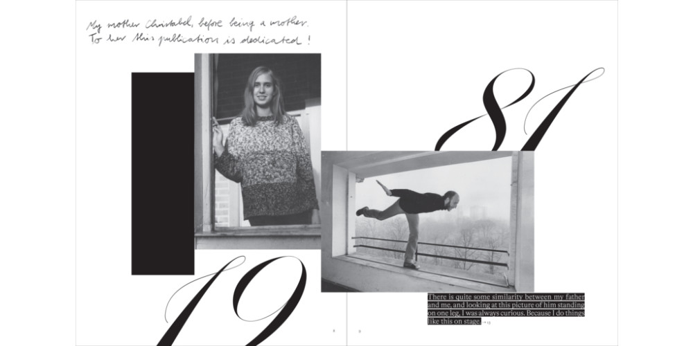 Das Buch ist ein großes Fotoalbum, dass die wichtigsten Stationen wie die Geburt 1981, das Aufwachsen im Vor-Wende Leipzig, der Erweckungsmoment beim Tanzsolo auf der Euro-Scene 1997 in Leipzig, das spätere Tanzstudium in Berlin (wo er seine treue Wegbegleiterin Anne Zacho Søgaard kennen und lieben lernte) und dann seine Projekte an verschiedenen Orten. Immer wieder kommt er nach Leipzig zurück, das mittlerweile wieder Lebens- und Arbeitsmittelpunkt ist.