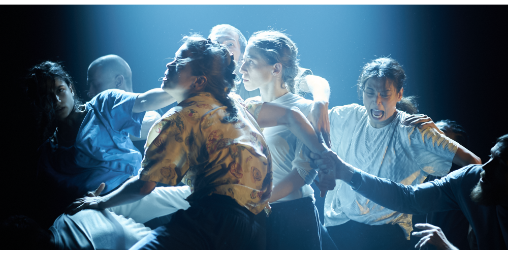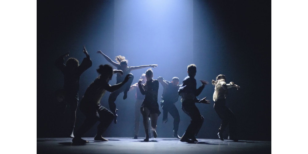 Allmählich, glaubt man, dehnt sich die aberwitzig verschluckte Shechtersche Zeit doch etwas aus oder hat man sich nur gewöhnt an den enormen bühnentechnischen, vor allem aber furiosen tanztechnischen Irrsinn? Das ist positiv gemeint, denn die dreizehn Tänzer*innen verkörpern diesen - als geb‘s kein Morgen – gestenreich und bedeutungsschwanger mit viel Anklängen an Folkdance : Carter, Cassarino, Despierre, Fallon, de Frankrijker, Frappat, Gouache, Harry, Haskins, Kim, Simin, Valerio, Vyent.
