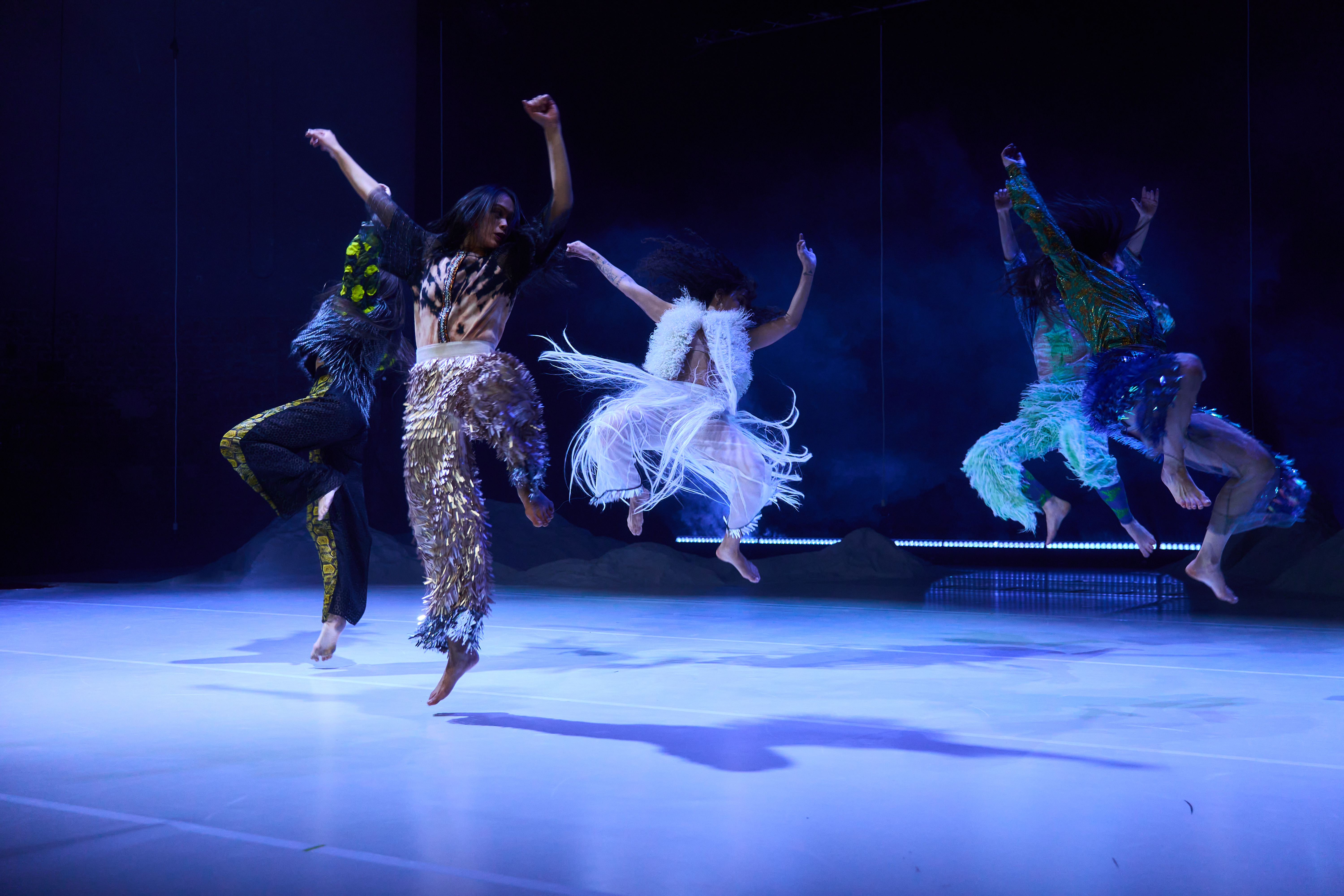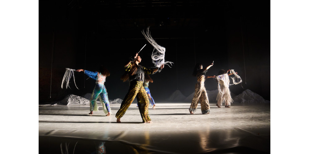 Bei „ZĀĀR“ von Ulduz Ahmadzadeh und ihrer Tanzkompanie Atash verlangsamt sich das Geschehen allmählich zu einem präzisen Zusammenspiel, bis Bewegungen und Klänge synchron ineinandergreifen. Tropfende Eiskugeln, rhythmisches Schütteln und Klatschen erzeugen eine Atmosphäre der Kälte, obwohl der Raum physisch warm bleibt. Die immersive Klanglandschaft von „ZĀĀR“ verstärkt die körperliche Wahrnehmung so sehr, dass am Ende der Eindruck entsteht, in dieser ritualhaften Choreografie selbst mittanzen zu wollen.