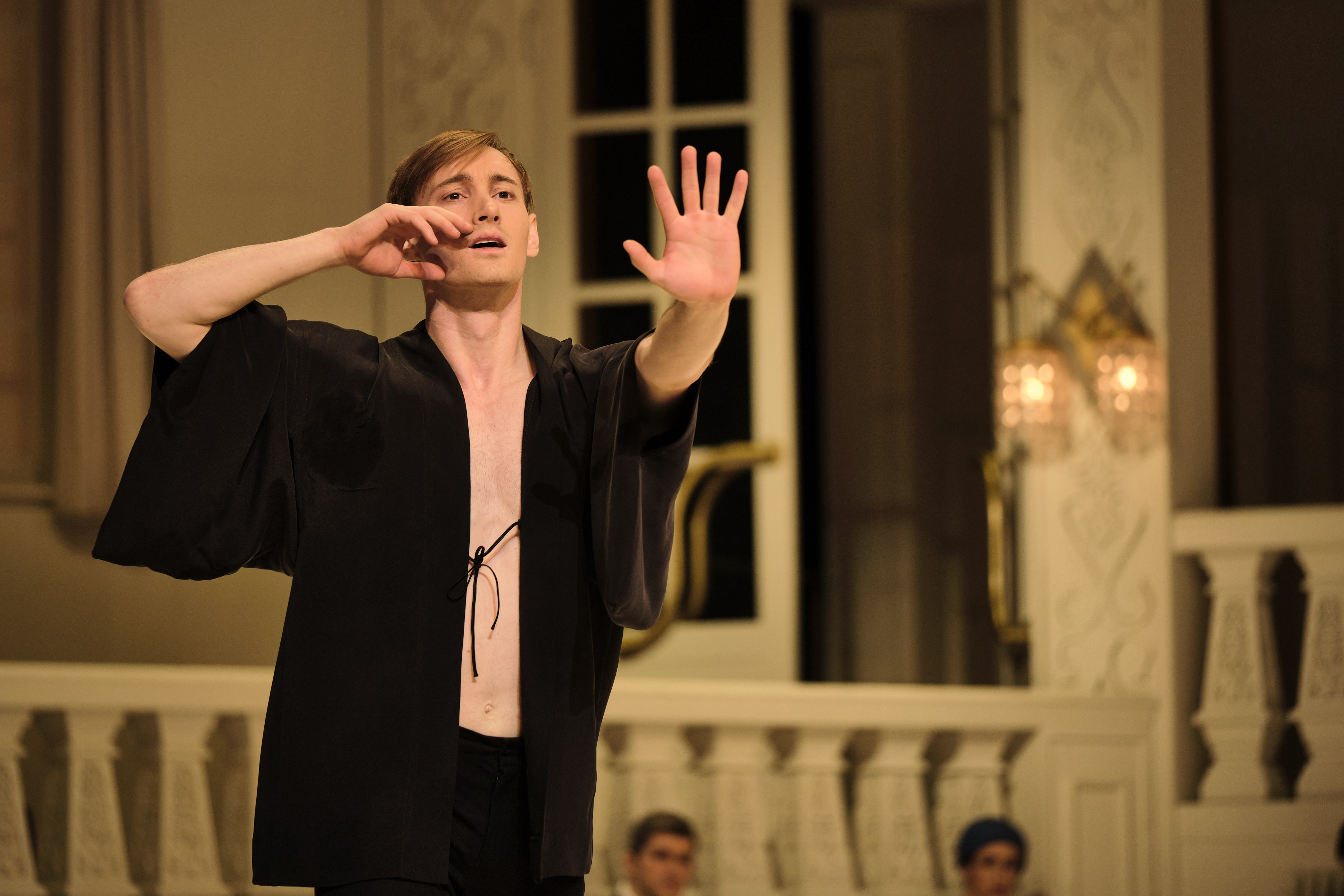 Mit diesem Auftritt zu Beginn des Stücks löst sich die Umgebung auf, und Nijinsky reist durch verschiedene Episoden seines Lebens. Darin scheinen nacheinander einzelne Ballette als Stationen seiner Karriere auf. So taucht etwa der sinnliche Goldene Sklave (selbstbewusst: Joseph Gray) aus „Scheherezade“ auf, der Kasper Petruschka (übermütig ausgelassen: Christian Bauch) aus dem gleichnamigen Ballett und natürlich der ikonische Faun (ebenfalls Joseph Gray) aus „L'Après-midi d'un faune“. Dabei sind es die emotionalen Höhen und Tiefen, die Nijinsky durchläuft, parallel gesetzt mit den Figuren, die er selbst in der Vergangenheit getanzt hatte.