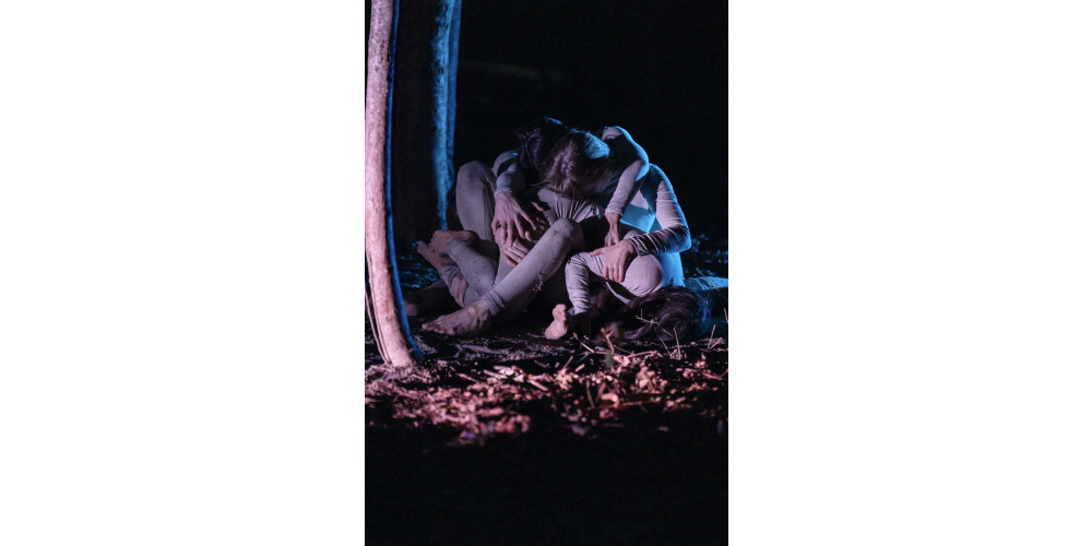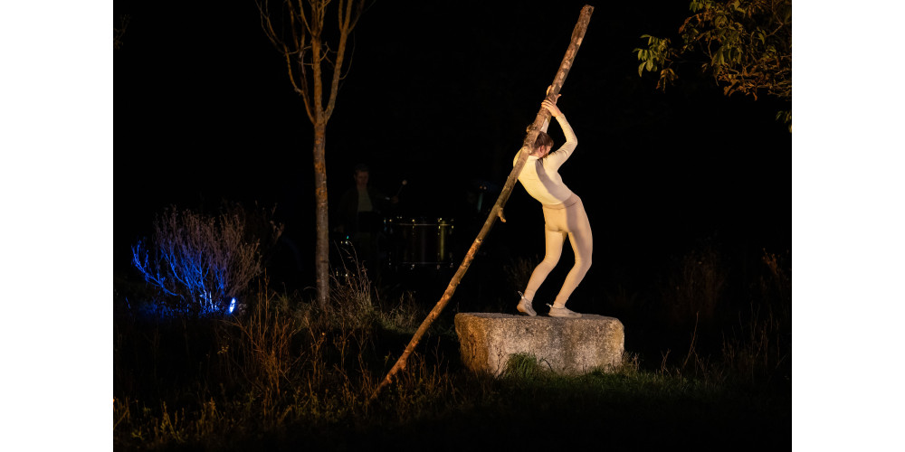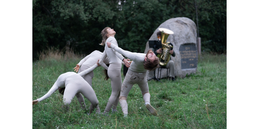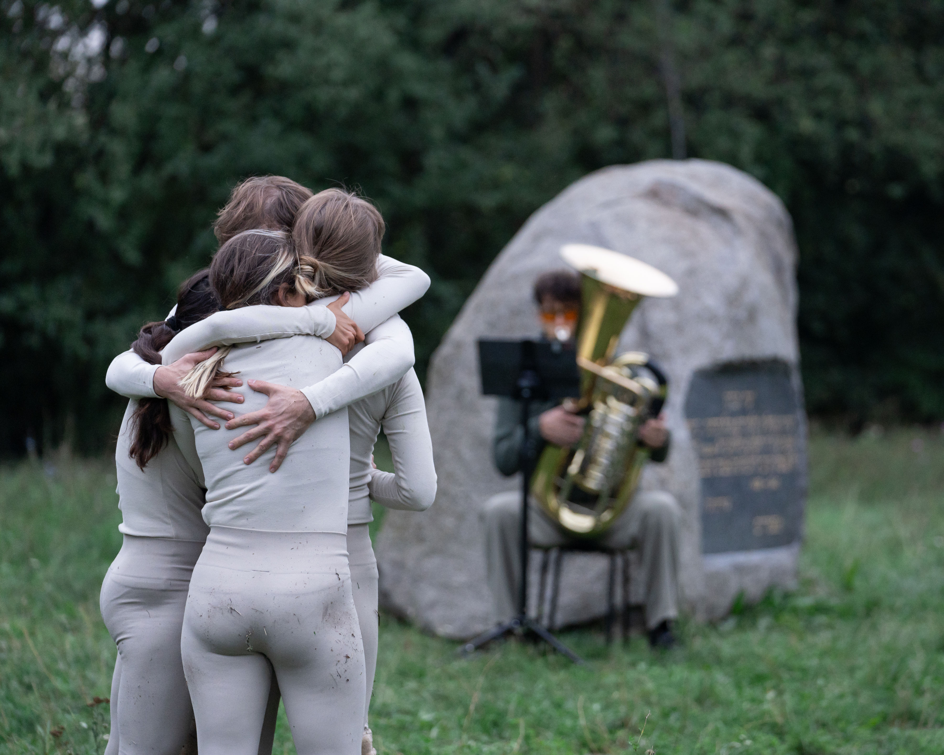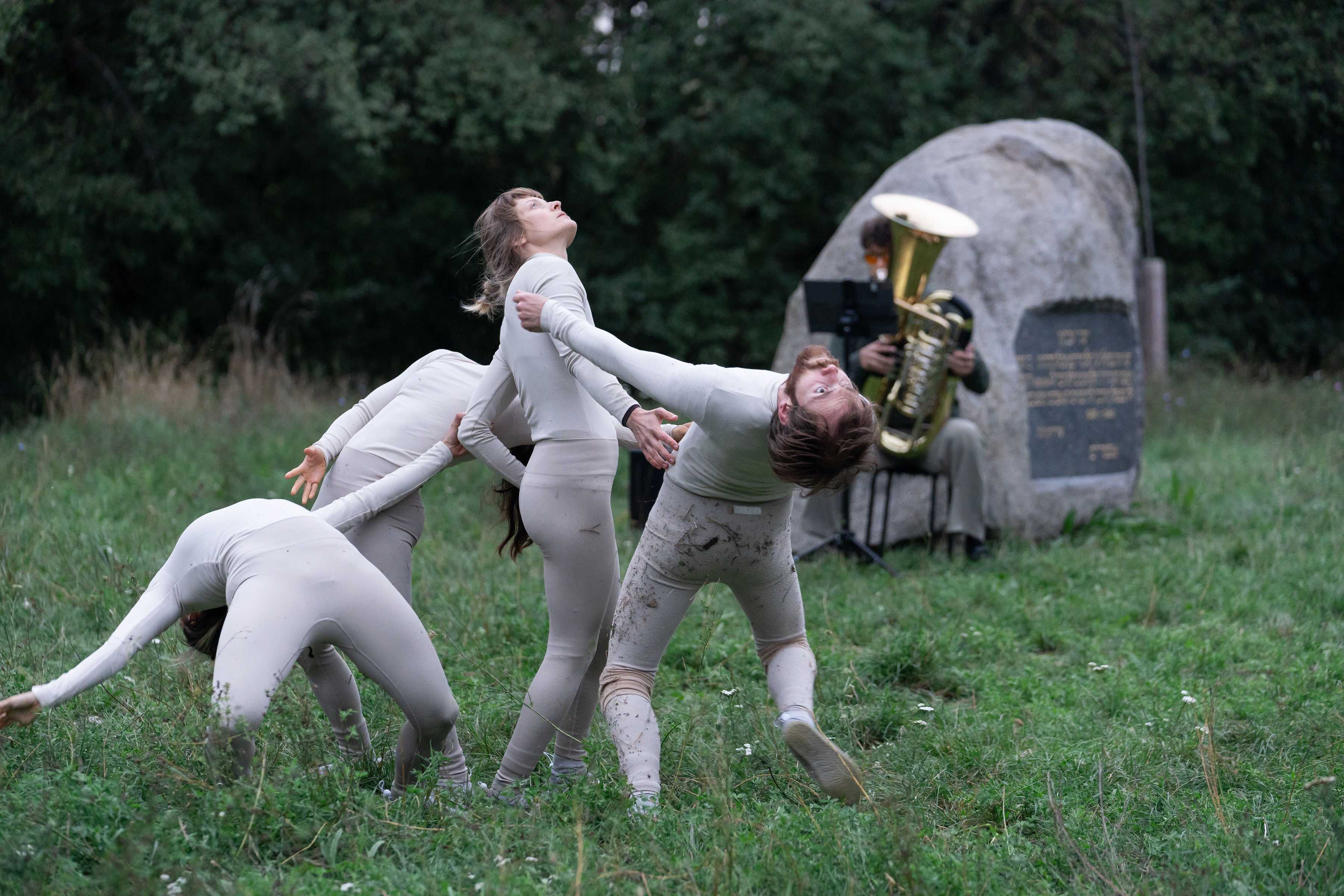 Nur mit U-Bahn oder Auto gelangt man in die Wiener Seestadt Aspern, eines der größten europäischen Stadtentwicklungsprojekte. Mehr als zwei Millionen Menschen zählt die Hauptstadt mittlerweile, ein Drittel davon sind zugezogene Bewohner*innen. Dort „draußen“, in dem seit 1987 gepflanzten Gedenkwald für die 65.000 jüdischen Menschen, die in Wien Opfer der NS-Diktatur wurden, luden der Choreograf Georg Blaschke und der Komponist Matthias Kranebitter mit dem Blackpage Orchestra zum Großraumtheater „Dichtes Holz“. Auf einer Lichtung, dann mitten im Wald tönt es harsch, verstörend, erinnernd, wie von überall. Vier Performer*innen, auffällig in cremefarbenen Anzügen, werden in ihren abstrakten Handlungen zu Projektionsflächen historischen Geschehens. Sie kauern, verbinden sich, legen sich flach, staksen weit in die Ferne. Das Umgehen mit langen Ästen – wie Tragen großer Last – evoziert Momente, die nachwirken.