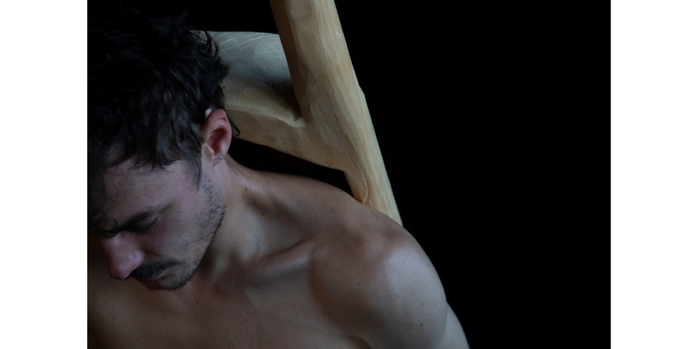 Männlichkeit und Mann-Sein verhalten zu müssen. Dabei steht ein Holzobjekt zwischen Phallus und Tragetasche als Mitakteur und Projektionsfläche mit auf der Bühne. Julian Lorenza arbeitet mit Gesten und verschiedenen Formen der Verkörperung, um sich der Frage zu nähern: Gibt es alternative Formen von Männlichkeiten oder muss Männlichkeit an sich überwunden werden?