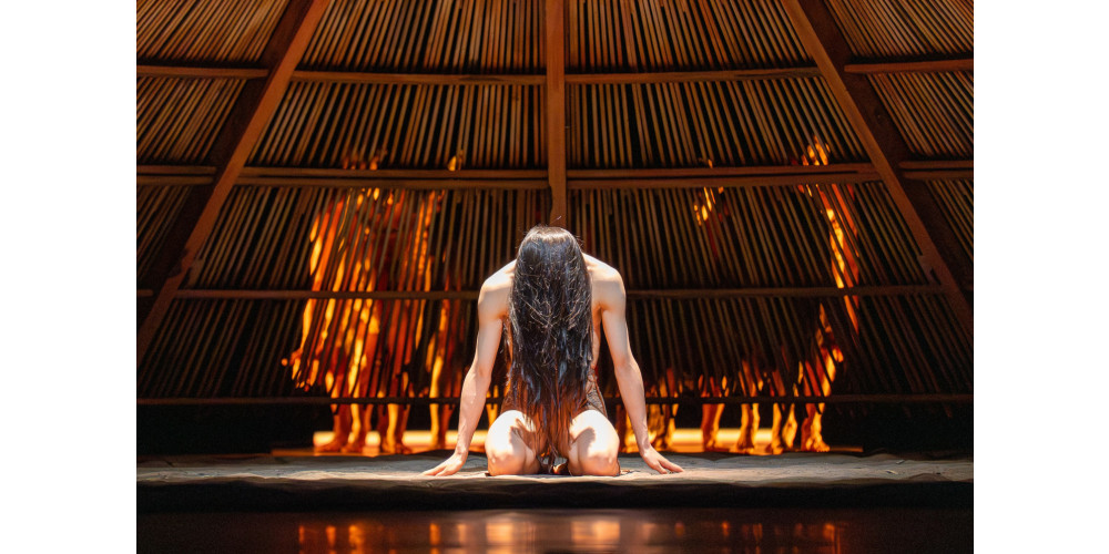 Unter dem angedeuteten Dach eines traditionellen afrikanischen Rundbaus steht Long Zou wortwörtlich im Zentrum, freier Oberkörper, die langen, schwarzen Haare vor dem Gesicht. Im Kreis einer scheinbaren Beschwörung vollzieht sich ein Ritus, der schließlich ein Opferungsakt zu sein scheint. Einflüsse des Contemporary, geerdete Körperlichkeit, Trommeln und dumpfes Dröhnen sind unmissverständlich. Die Kostüme von Yann Seabra atmen dafür eine gewisse Vordergründigkeit: Die Frauen tragen strohartige Kleider mit langen Fransen. Die Männer stecken in hellen Kniebundhosen. Hier den afrikanischen oder indigenen Kontext kaum künstlerisch zu übersetzen, zeigt sich auch in der tänzerischen Formensprache. Die Idee eines Stammesritus, der als solcher ja nicht als Kunstform gedacht ist und per se auf Bewegungen beruht, die wenig Komplexität in der körperlichen Herausforderung mit sich bringt, kann erfolgreich künstlerisch umgesetzt werden und würde auch auf einer solchen Bühne funktionieren. Bestes Beispiel dafür ist Pina Bauschs „Sacre“. Hier aber wirken die Bewegungen unterkomplex und bringen dadurch eine Dramatik mit sich, die man eher in der Operette erwartet. Nur das überraschende Ende schafft es, der Aussage einen größeren Rahmen zu verleihen und dadurch wenigstens die inhaltliche Aussage zu verstärken.