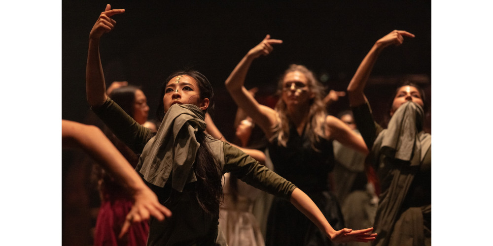 Khan hat sich bewusst für ein rein weibliches Ensemble entschieden. In der Komposition von Aditya Prakash dominieren Perkussionsinstrumente. Die Musik kommt vom Band und ist unerträglich laut – einige Zuschauer*innen verlassen deswegen sogar den Saal. Choreografisch sieht man von Khan gewohntes: starker Akzent auf Hände und Arme, die langen offenen Haare der Tänzerinnen werden bei manchen Bewegungen bewusst eingesetzt. Wie auch in früheren Produktionen Khans ist alles (fast zu) perfekt durchgestylt, die Tänzerinnen herausragend und 65 Minuten pure Energie ohne einen Moment der Pause. Am Ende stellt sich so eine gewisse Überforderung ein, auch, weil man die Handlung nur bedingt nachvollziehen kann.