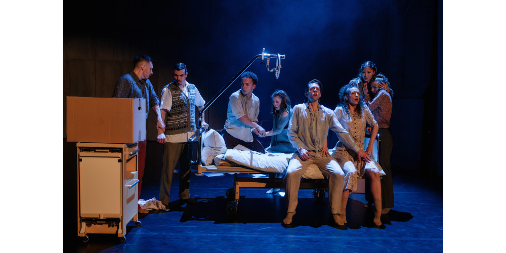 Lucie Horná und Àvaro Olmedo tanzen im Anschluss den in seiner Heftigkeit eindrücklichsten Pas de Deux des Abends. Olmedo nimmt die Leblose auf, schleudert und wuchtet sie hin und her. Das hat die Kraft einer Tragödie à la „Romeo und Julia“. Zum Ende des Duetts finden sich die beiden Partner allerdings in einer tröstlichen Umarmung wieder und geben sich gegenseitig Halt. Dass Krähenbühl in einem offenen Schluss alle acht Interpret*innen mit schreckgeweiteten Augen und Armen – hilfesuchend Richtung Publikum gereckt – auf das Krankenbett bannt, brennt sich förmlich in die Netzhaut ein.
