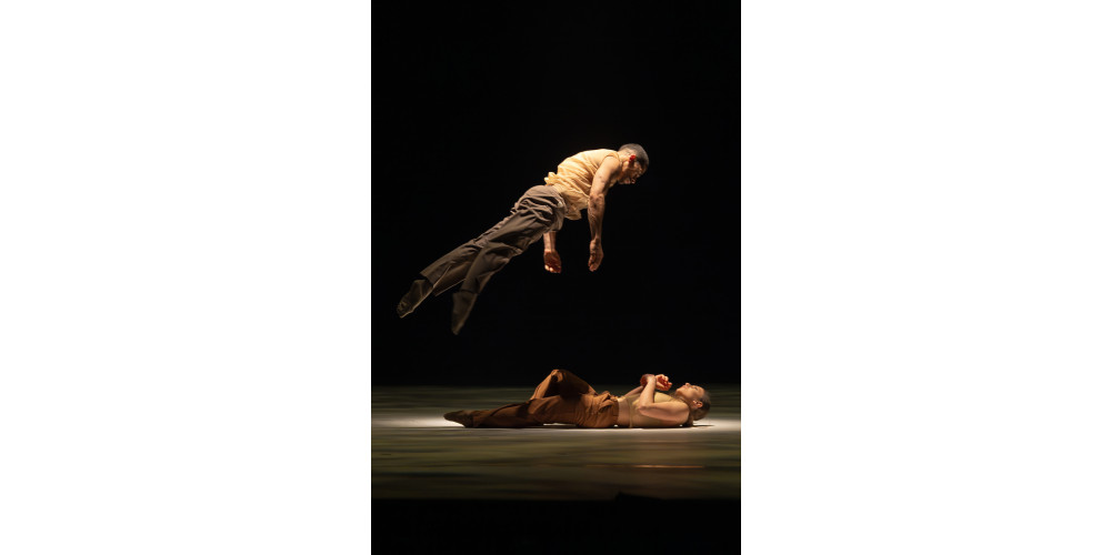 Wiederholt lässt Montero seine insgesamt 15 Protagonist*innen entweder allein oder gemeinschaftlich durch die Luft segeln. Gruppen splitten sich in Untergruppen auf. „Tilt“ ist Tanz pur, fantastisch inszeniert und für alle Tanzenden technisch, aber auch darstellerisch herausfordernd. Schwingt doch in jeder vermeintlich noch so kleinen motorischen Nebensächlichkeit etwas an inhaltlicher Bedeutsamkeit mit. Typisch für Montero, der unabhängig davon, worum es thematisch in einem seiner Stücke geht, poetisch scharfsinnig aus dem Vollen schöpft.