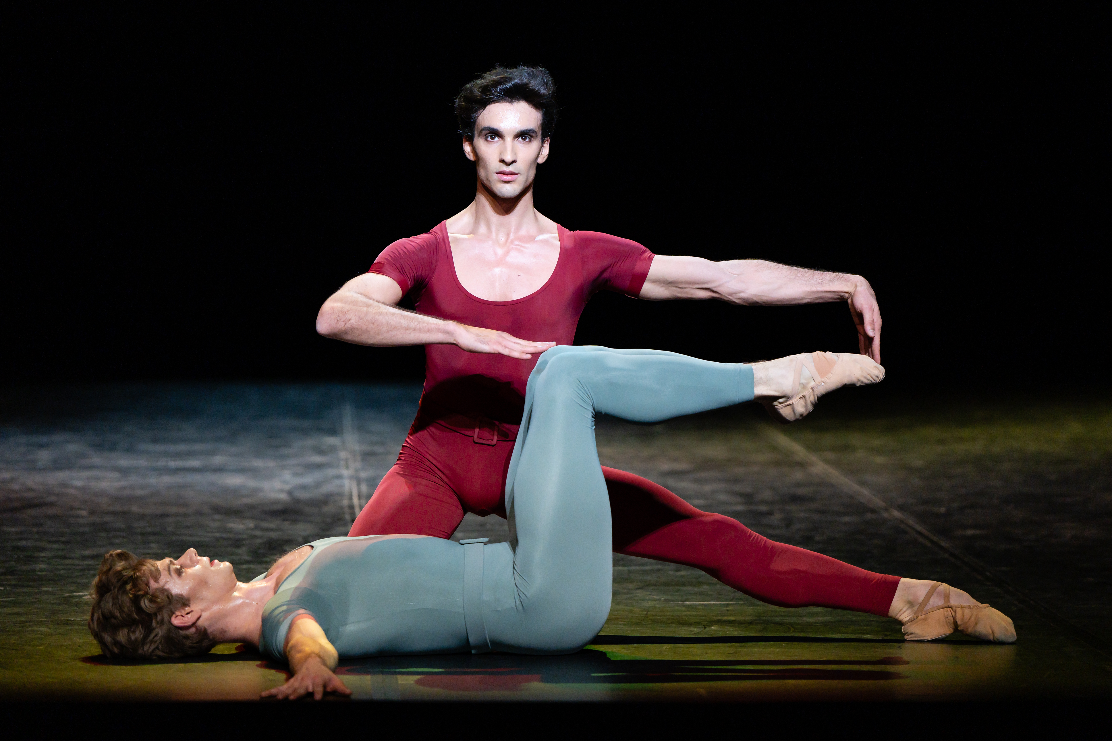 Erheblich erfreulicher gerieten Mahlers vier „Lieder eines fahrenden Gesellen“ in der Choreografie von Maurice Béjart, präzise einstudiert von Gil Roman, dem langjährigen Tänzer unter Béjart und dessen Nachfolger in der Leitung des Béjart Ballet Lausanne. Hier brillierten Stuttgarts Erste Solisten Henrik Erikson und Martí Paixà, begleitet vom stilsicheren Gesang des Baritons Yannick Debus. Wie sich die beiden Männer hier im Tanz begegnen, zuerst scheu und verhalten, dann leidenschaftlich, aber auch verletzend, zerstörerisch, um schließlich doch zusammen weiterzugehen, klar und zielstrebig der eine, zögerlich-ängstlich und eher widerstrebend der andere – das war bewegend anzuschauen und makellos getanzt.