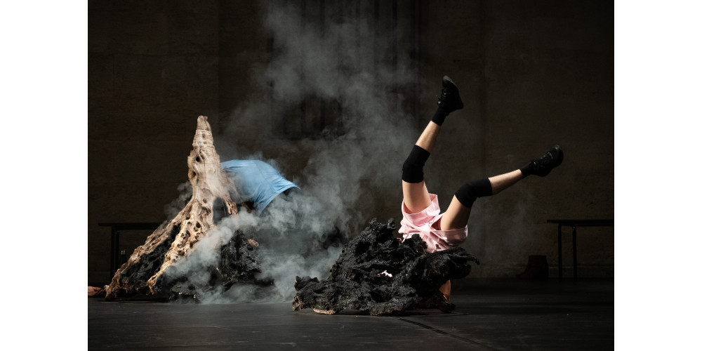 Auf der Bühne sind riesige trockene Baumstümpfe ausgelegt – ein Symbol für eindrucksvolles, nutzloses Totholz. Die Choreografin spielt ein bisschen mit dem Feuer und demonstriert, wie man die sperrigen Brocken ausräuchern kann. Die Texte des Stücks, geschrieben von bekannten Autorinnen, werden von den Tänzerinnen verblüffend authentisch vorgetragen. Die Tanzeinlagen, in denen Mathilde Monnier Bestürzung und Wut eindrucksvoll in Körpertheater umsetzt, wirken wie Kommentare zum Text; dabei ist die weit über Sechzigjährige selbst auf der Bühne aktiv. Als sich am Ende der Protest der Frauen in einem wilden Befreiungsreigen Raum schafft. Ist sie diejenige, die das Publikum unermüdlich zum Mitmachen antreibt. Saallicht gibt es erst, wenn es die ihr gelungen ist, die Zuschauerinnen und Zuschauer von den Sitzen zu reißen – kein Problem für die große französische Lady des zeitgenössischen Tanzes, selbst in der dicht besetzten Hebelhalle.