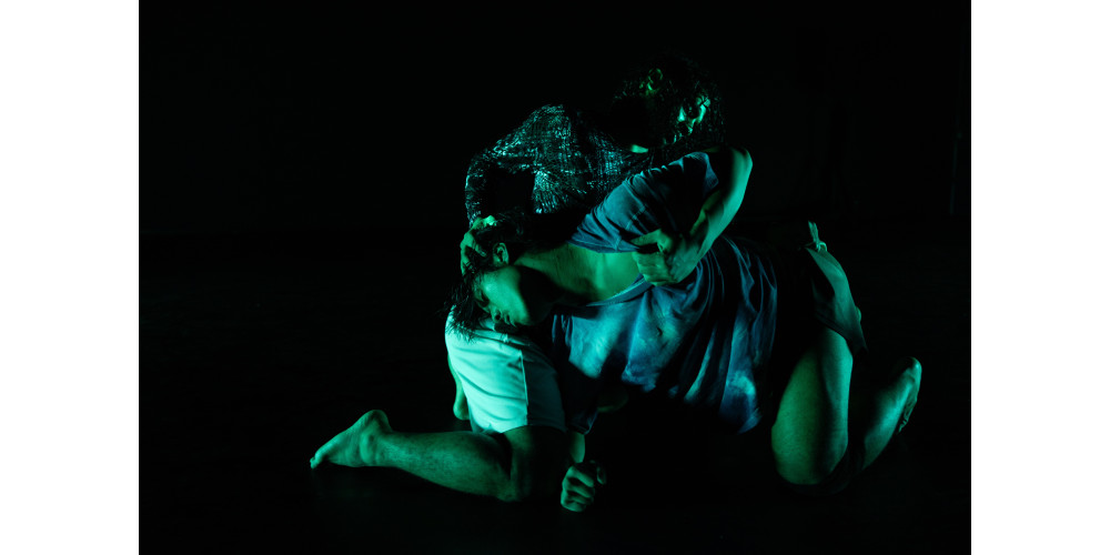 Die vier Performenden sind da sicher keine Maschinen, aber ihre digitalen Aneignungsversuche bleiben nicht ohne Eindruck oder Folgen. Da stößt immer wieder das Hinterteil der einen Person an den Brustkorb der anderen oder jemand liegt relativ steif mit den Beinen auf dem Rücken der anderen und wird von diesen gezogen. Assoziationen zum Umgang mit Haustieren, die man streichelt, stellen sich ein, wenn sich eine der agierenden Person auf allen Vieren von einer weiteren berühren lässt und dabei in einem immerwährenden Schaukeln bleibt. Es gibt Zweier- und Dreier-Nummern, und auch das Zusehen kann offenbar Teil der neuen erotischen Formen sein. Bei anderen Konstellationen lässt sich an Sadomaso-Techniken denken. Über all dem liegt ein Hauch elektronischer Musik mit verzerrten Stimmen, ein leicht gewebter Teppich unterstützt durch ein permanent schummriges blaues Licht. Ansonsten ist die Bühne leer. Über die Zeit läuft dieses Spiel der Formen allerdings leer. Bei aller Finesse des Körperspiels treten die Vier dramaturgisch auf der Stelle, was sie mit NPCs (Nichtspielercharakteren) in Computerspielen gemein haben, die ja selbst nach gewaltsamen Tod an gleicher Stelle wiederauftauchen. Alles wirkt eher wie ein Showing denn wie ein durchkomponierter Abend.