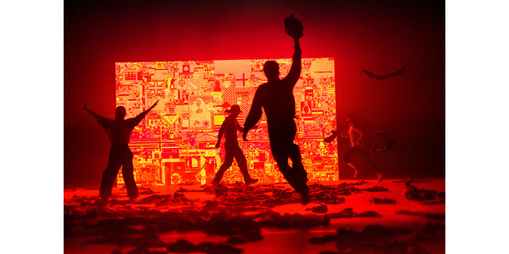 Dieses Beballern mit einer Vielzahl von Eindrücken kennt man von Ostruschnjak, wenn auch temporeicher und raffinierter geschnitten als dieses Hintereinander, das unterbrochen wird von stillen Momenten ohne Musik. Wie der Tanz sich zwischen diesen beiden Ebenen und zum Thema verhält, wird selten klar. Mal klumpt eine Männergruppe sich zu einer Körperskulptur zwischen Bromance und Schlägerei zusammen, mal bleiben Münder im Jubel oder Angstschrei offenstehen. Da gelingt der Kantengang, da stellt die Choreografie Fragen, die die Zuschauenden in ihren Köpfen weiter ventilieren können. Und wenn die dekorativen Schals als Schulterpolster unter die T-Shirts gepackt, zu Bällen geformt und in die Luft geworfen werden, ergeben sich tolle Bilder, sofern das Auge oder die Kamera den Moment erwischen.